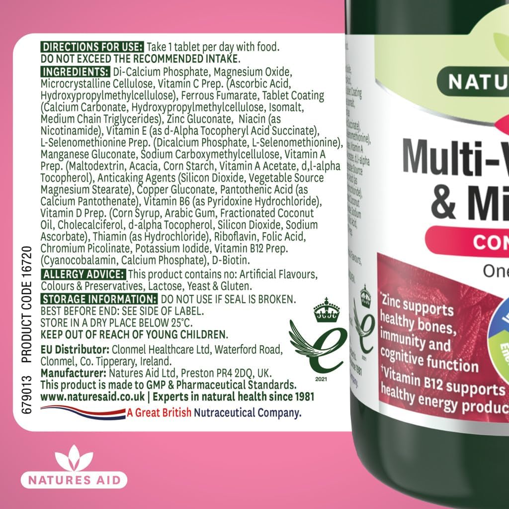 Natures Aid Multi-Vitamins and Minerals Complete | 90 Tablets | One-a-Day A-Z | Zinc Supports Cognitive Function, Healthy Bones, Immunity, and Vitamin B12 Supports Healthy Energy Production 90 Count (Pack of 1)