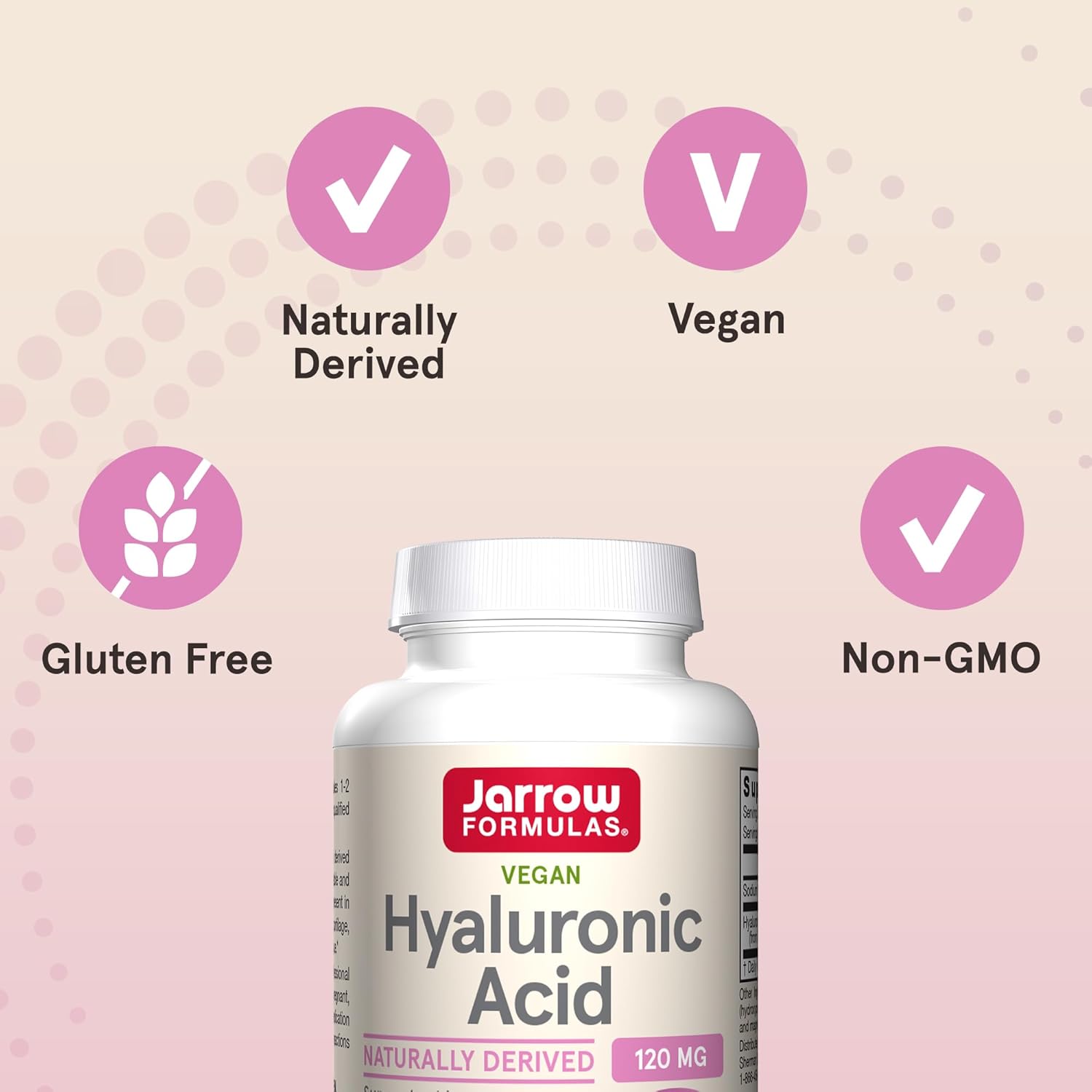 - Daily Wellness Formula: One 120 count bottle of Jarrow Formulas Hyaluronic Acid supplement