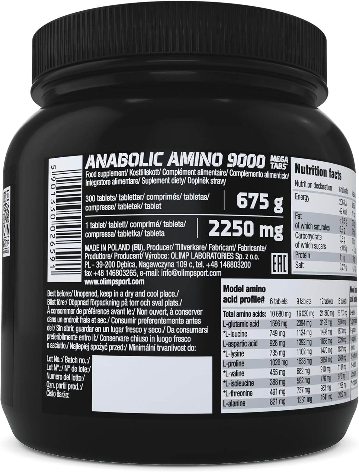 Olimp Sport Nutrition Anabolic Amino 9000 Growth And Maintenance of Muscle Mass Formula - 300 Tabs