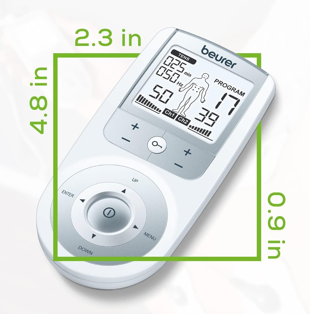 Beurer EM44 TENS Unit Muscle Stimulator with 50 Intensity Levels for Muscle Pain Relief, EMS Muscle Stimulator Includes 4 Electrode TENS Pads, Belt Clip, and Batteries with Tens Machine EM44 - Multi Use