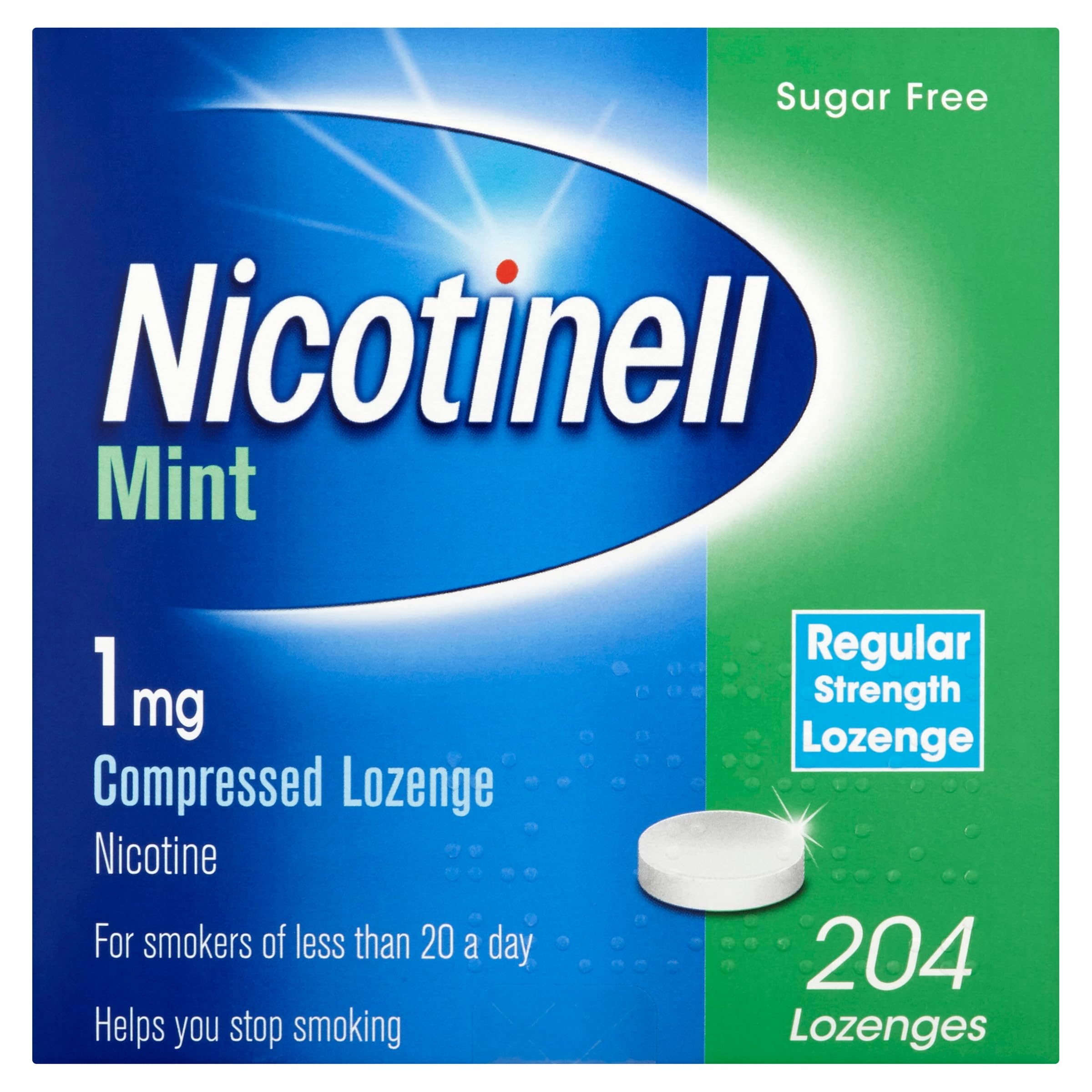 Nicotinell Mint Lozenge 1mg (204 Lozenges), Stop Smoking Aid, Sugar Free Nicotine Lozenges, Fresh Mint Flavour, 1mg Regular Strength for Light Smokers, Quit Smoking Aid Single