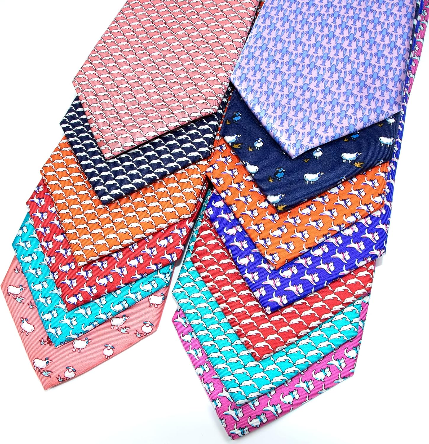 100% Silk Ties for Men Handmade Neckties with Animal Printed Patterns+Gift box … Lobster - Sea Blue on Rose Pink Regular Length - 59"