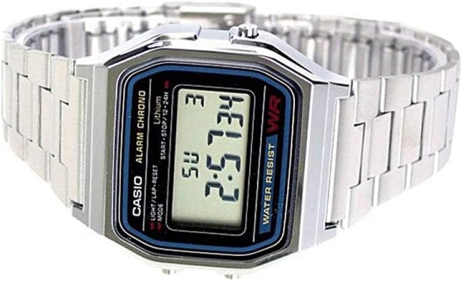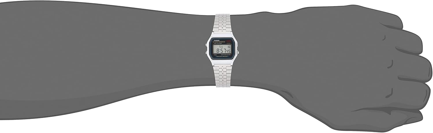 Casio Unisex Watch - A159W-N1DF Grey Dial, Silver Band