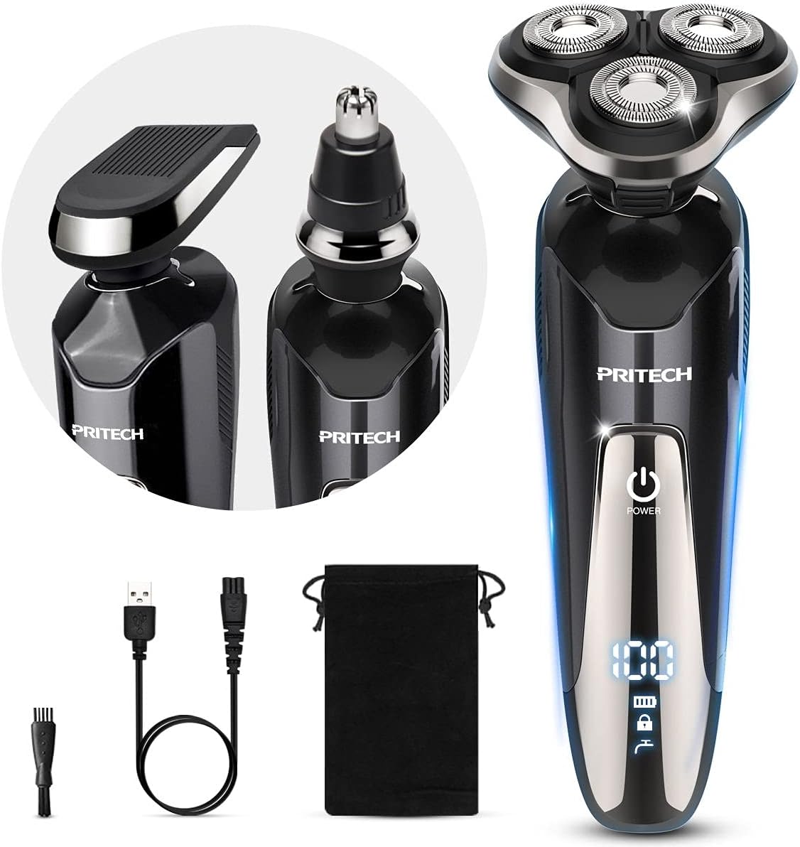 PRIITECH Shaver for Men,3 in 1 Electric Razor Hair Beard Nose Trimmer Gromming Set,Coedless Rechargeable Shaving Wet and Dry USB Charging Black