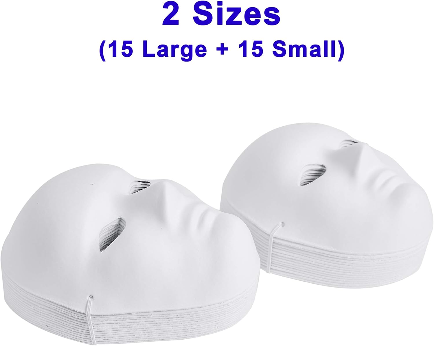 CALPALMY 30 Pack 2 Sizes Paper Mache Masks - Create Artistic Craft Projects from Wall Decorations to Theater and Halloween Costumes; Party, Masquerade Parties and Classroom Art White