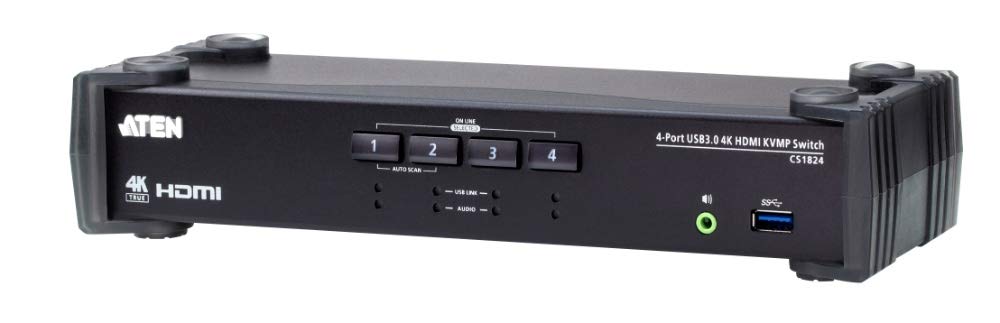 The ATEN CS1824 KVMP™ Switch allows you to easily manage four computers with HDMI interface via a single USB keyboard, mouse and HDMI monitor. The CS1824 supports the best video quality with up to 4K DCI (4096 x 2160 at 60 Hz) and optimizes the multitasking experience for the user.