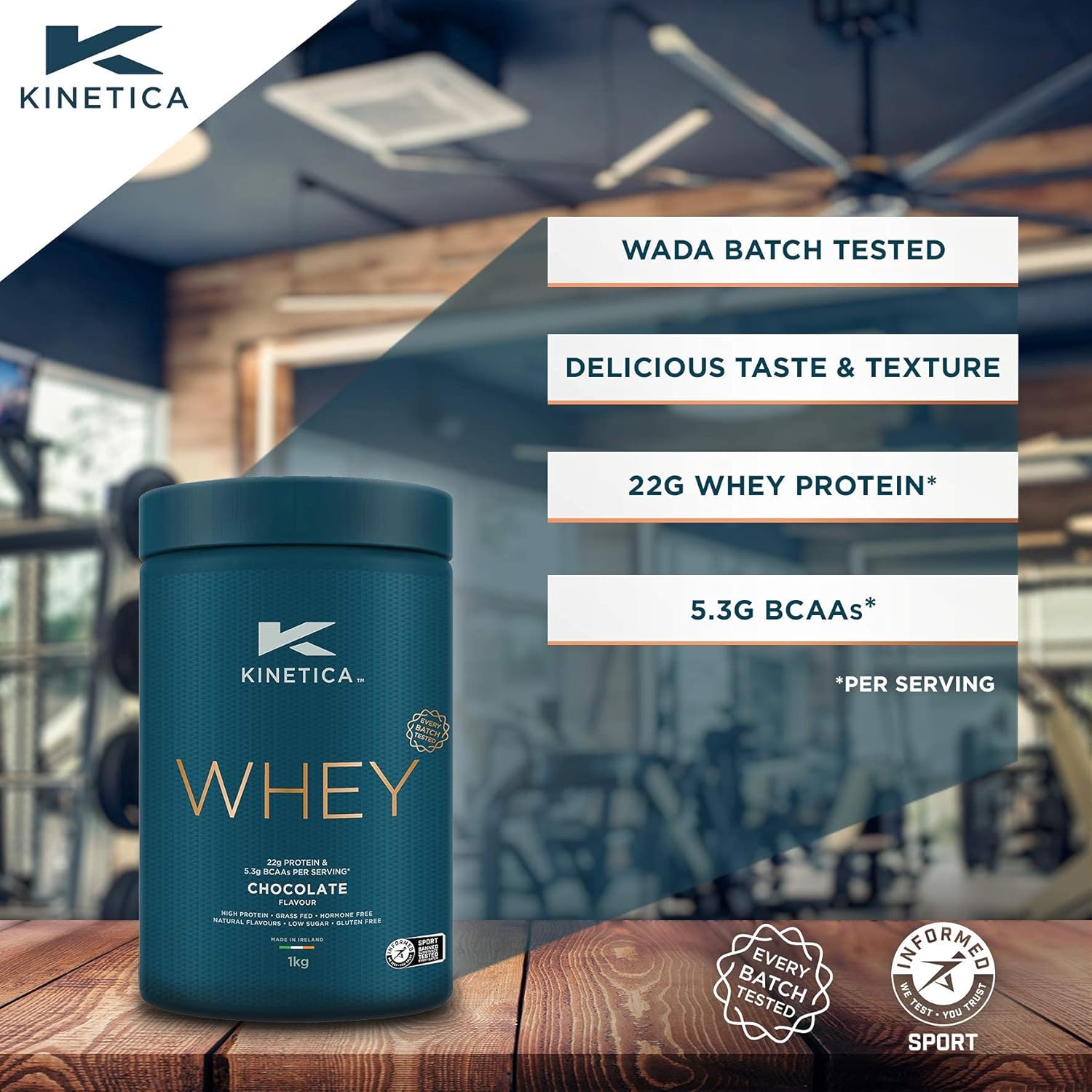 Kinetica Protein Powder Chocolate 1Kg, 22G Per Serving, 33 Servings, Whey From EU Grass-Fed Cows, Excellent Mixability & Taste