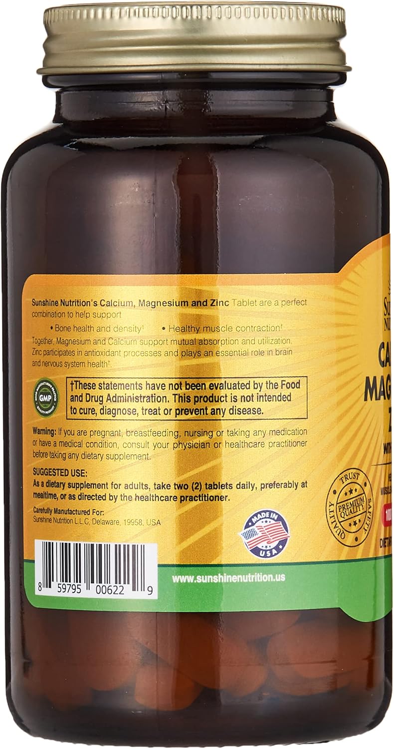 Sunshine Nutrition Calcium Magnesium Zinc With Vitamin D, 100 Tablets | Helps Promote Muscle & Bone Health | Gluten Free