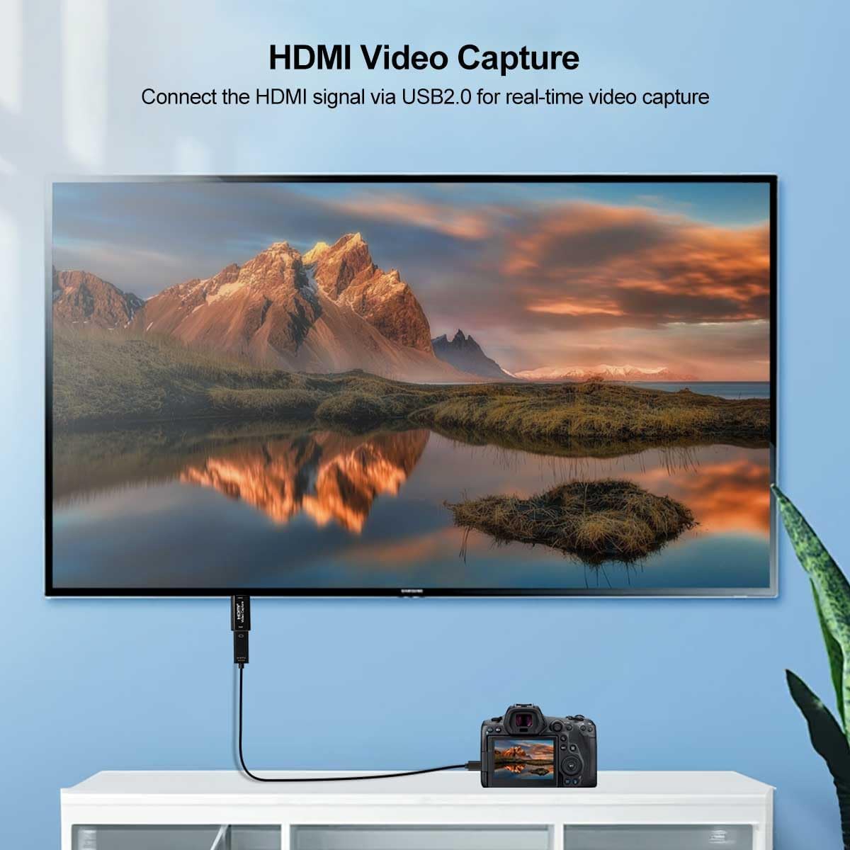 T Tersely Portable Audio Video Capture Cards, HDMI to USB 2.0 1080P 4K Record Via DSLR Camcorder Action Cam Link for High Definition Acquisition, Live Broadcasting, Video Conference, Teaching, Gaming