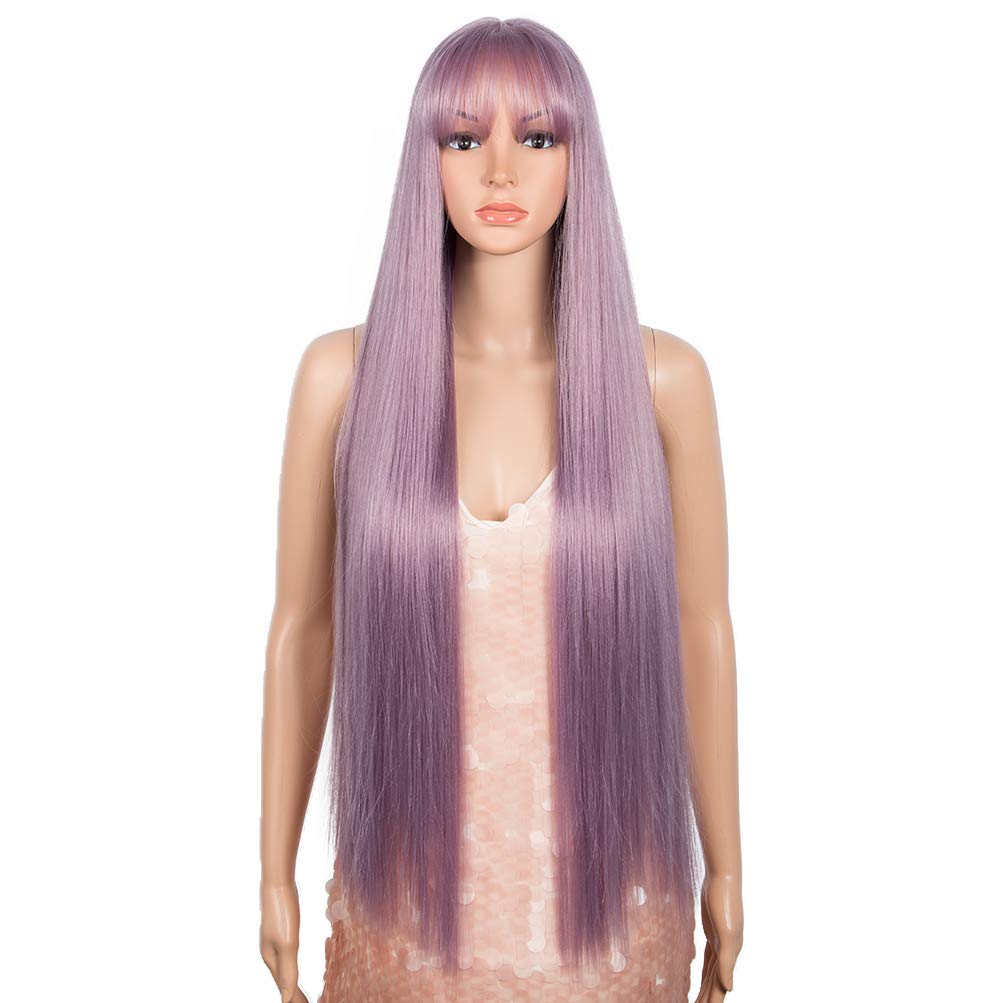 Style Icon 35†Long Straight Wig Y Part Lace Wig Middle Part Synthetic Purple Wigs with Bangs Simulated Scalp High Temperature Fiber Heat Resistant Wig (Y Part Lace Wig, QTASHPU) Y Part Lace Wig QTASHPU