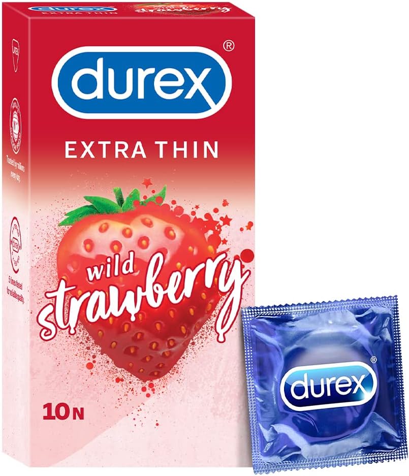 - Durex Extra Thin Wild Strawberry Flavoured Condoms for Men - 10s