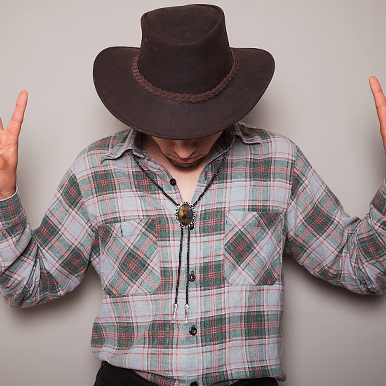 LOLIAS Bolo Tie,Handmade Vintage Bolo Ties for Men Western Cowboy Leather Necktie with Natural Tiger Eye Stone Costume Accessories for Men Women 6Pcs