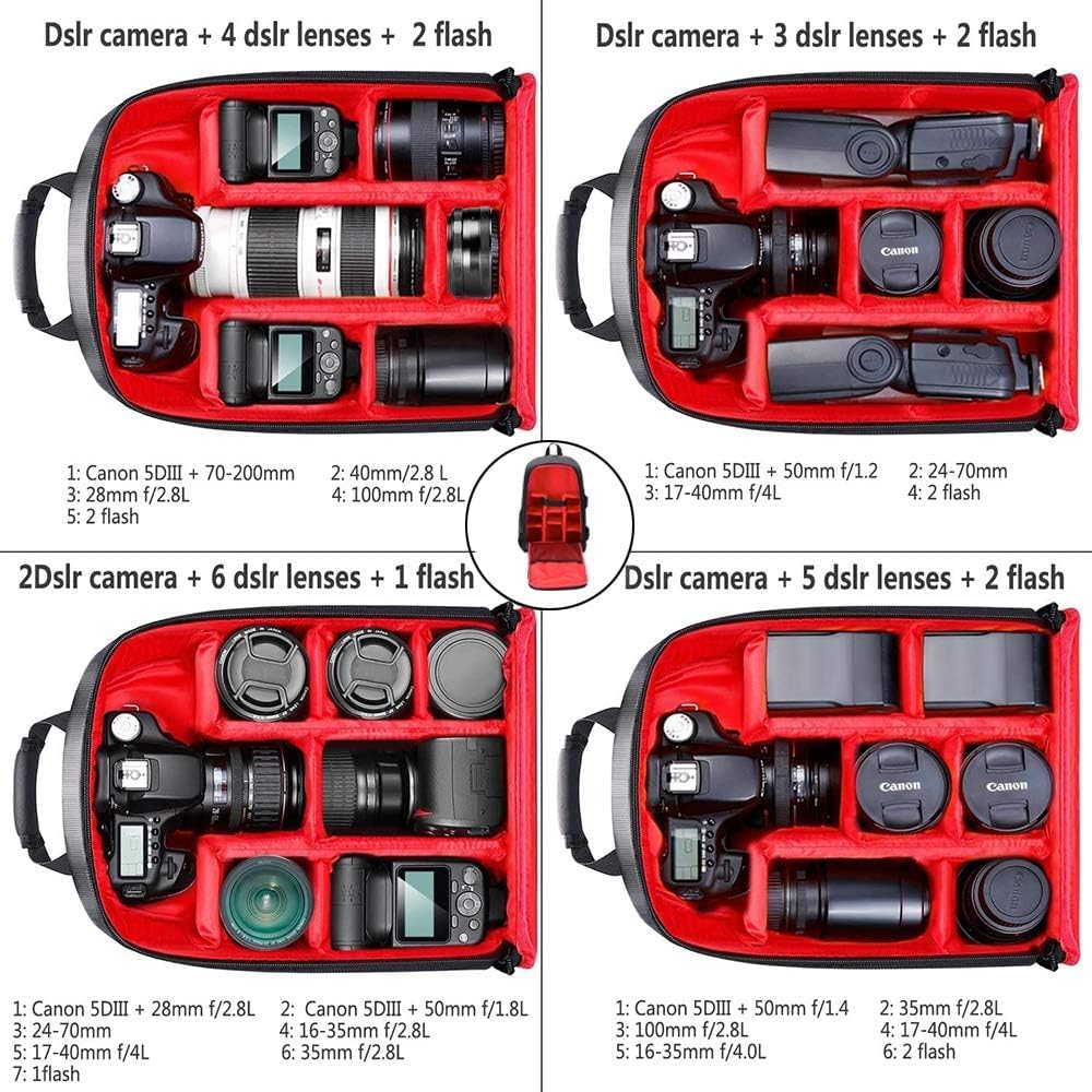 - 📷【Professional Camera Backpack with 15inch Laptop Compartment】 8 pieces padded removable dividers can be reorganized and offer certain protection for your own camera equipments. Camera tripod can be attached to the sides of the camera bag. Dedicated 15inch laptop/tablet pocket.