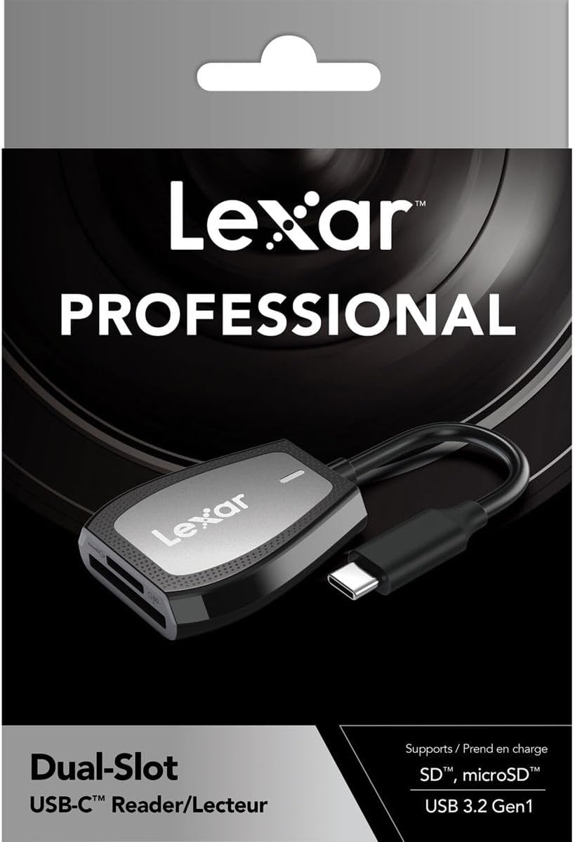 Lexar Professional USB 3.2 Type-C Dual-Slot Reader, Supports SD and microSD UHS-II Cards, Up to 312MB/s Read (LRW470U-RNHNU)