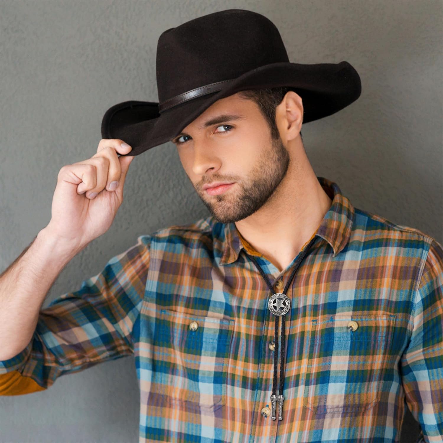 - 【COWBOY TIES FOR MEN】 The necktie rope is a hand braided leather type material