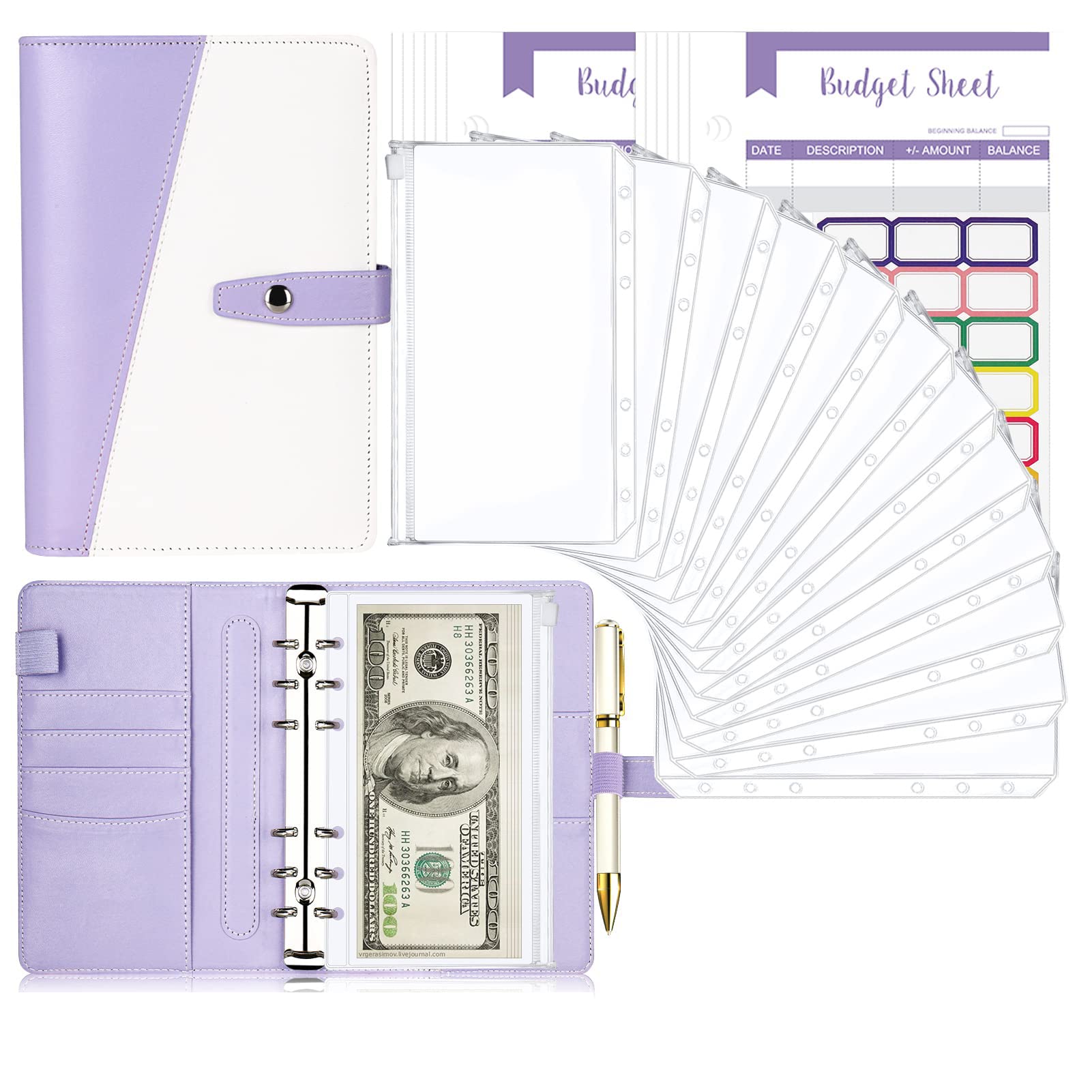 KASTWAVE A6 PU Leather Budget Binder With Cash Envelopes, Zipper Envelopes, and Budget Sheets - 12pcs Set for Saving Money Purple