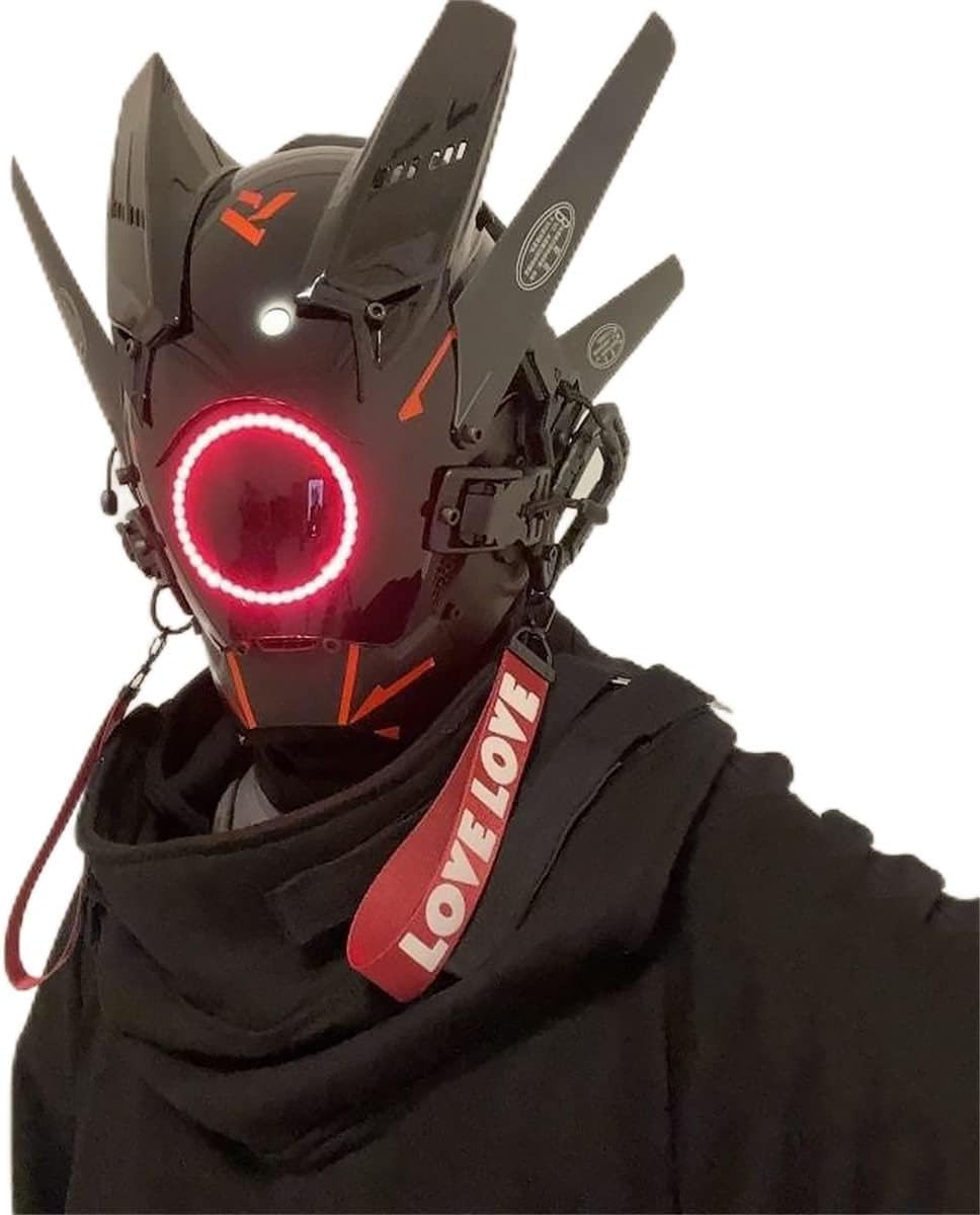 YYINYUAN Futuristic Punk Mask Cyber Techwear Mask Cosplay Costumes Black and Red Led Mask Face Mask Halloween Cosplay Mask for Men, Women