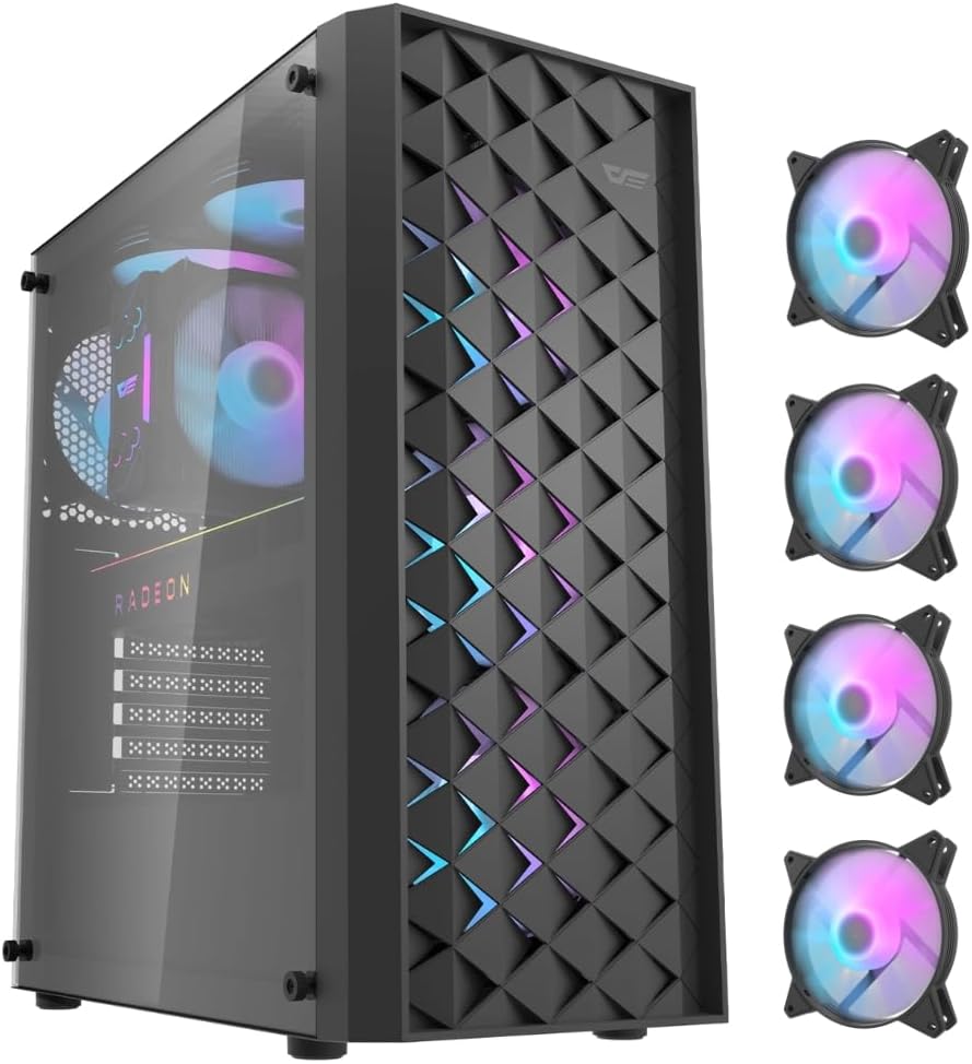 Darkflash DK351 ATX/M-ATX/ITX Gaming PC Case With Pre-installed 4 ARGB Case Fans, Dragon Scale Design With USB 3.0, Tempered Glass Gaming Cabinet (Black)
