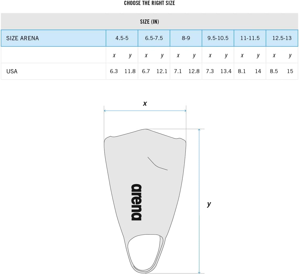 arena Unisex Adult Powerfin Pro II Training Fins for Swimming with Short Blade Open Heel Side Grooves, Silicone, Sizes 4.5-13 Blue 38-39