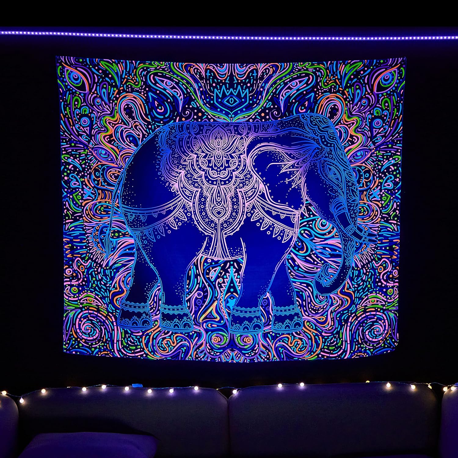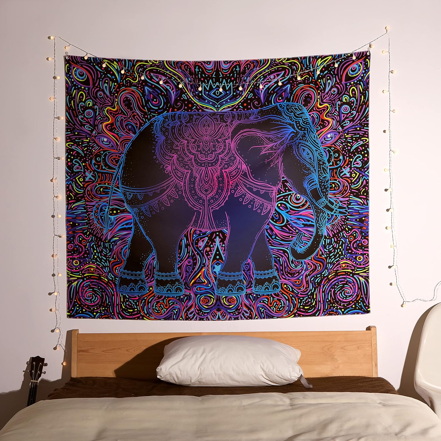 BPA Black light Tapestry UV Reactive Elephant Psychedelic Tapestry Trippy Buddha Aesthetic Wall Hanging Hippie Tapestry for Bedroom Elephant Living Room Décor
