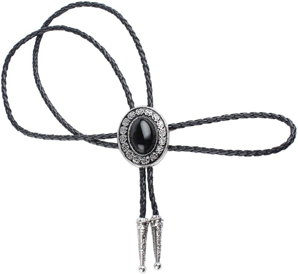 BANKTM Vintage Western Cowboy Mens Bolo Tie, Black, as described