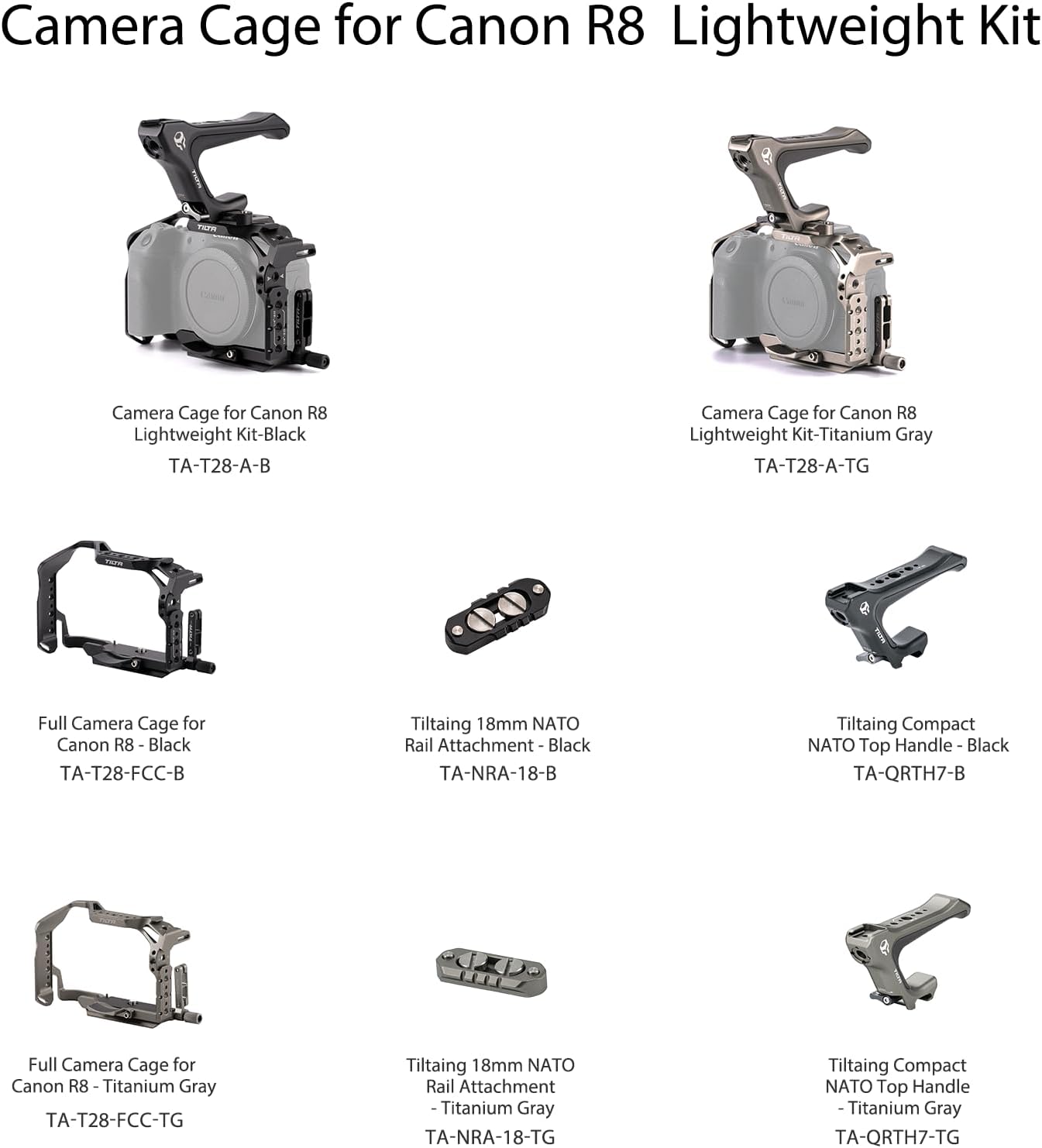 Tilta Camera Cage Compatible with Canon R8 Lightweight Kit with NATO Top Handle and NATO Rail Attachment - Titanium Gray TA-T28-A-TG Lightweight Kit - Titanium Gray