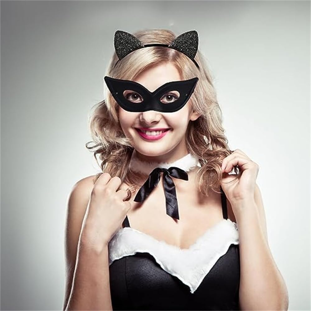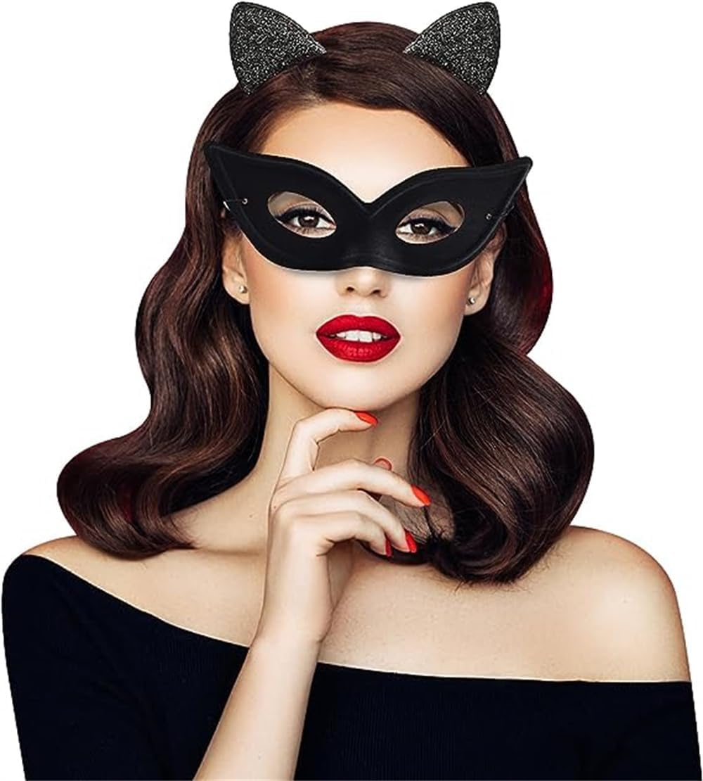 - 💖Package Included: You will get one black catwoman mask and one black glitter cat ear hairband. The 2 pieces of cosplay combination set will complement any cosplay outfits