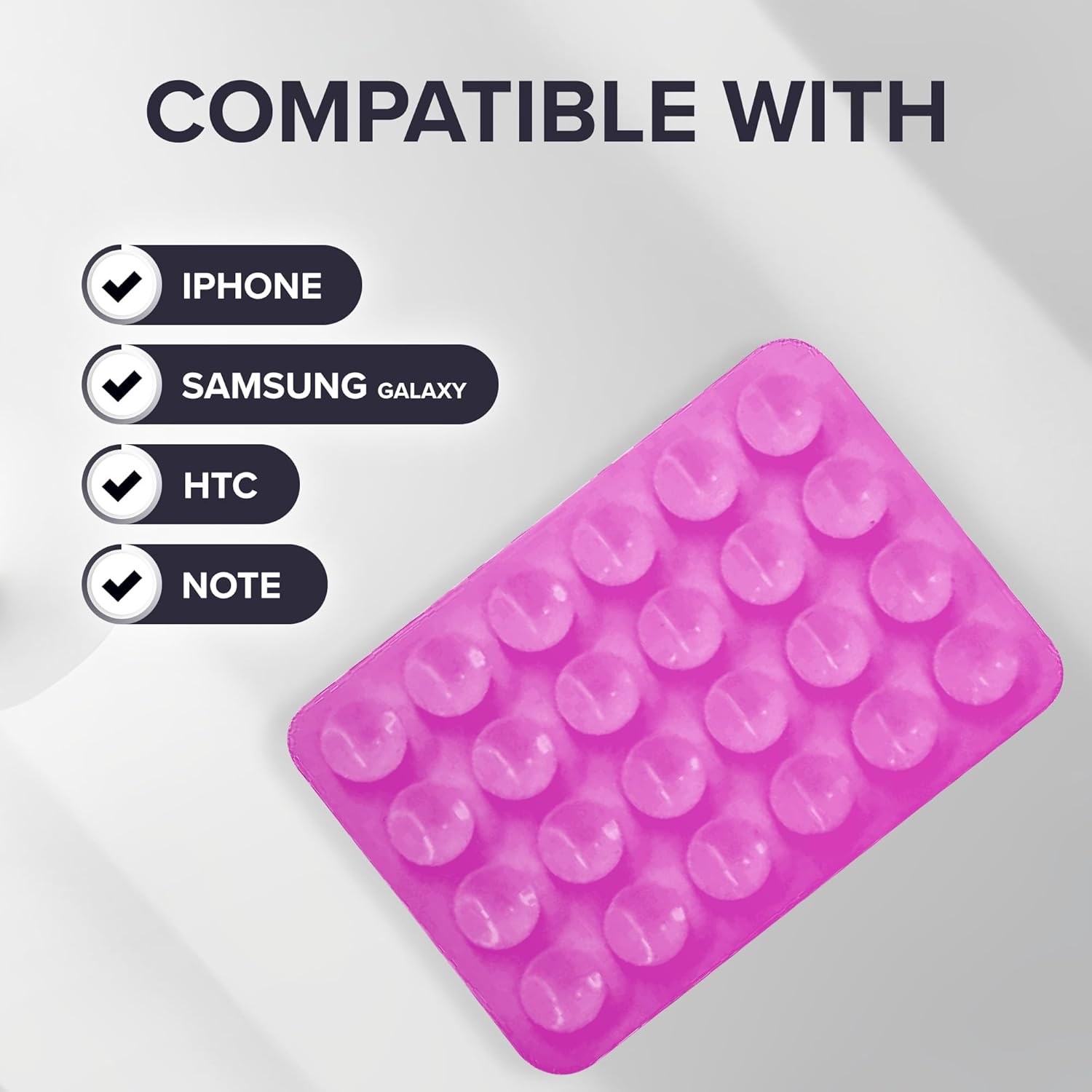 - Peel-and-Stick Adhesive Backing – Our non-slip silicone pad sticky grip mount attaches to almost any standard (smooth) cellphone case which makes it compatible with iPhone