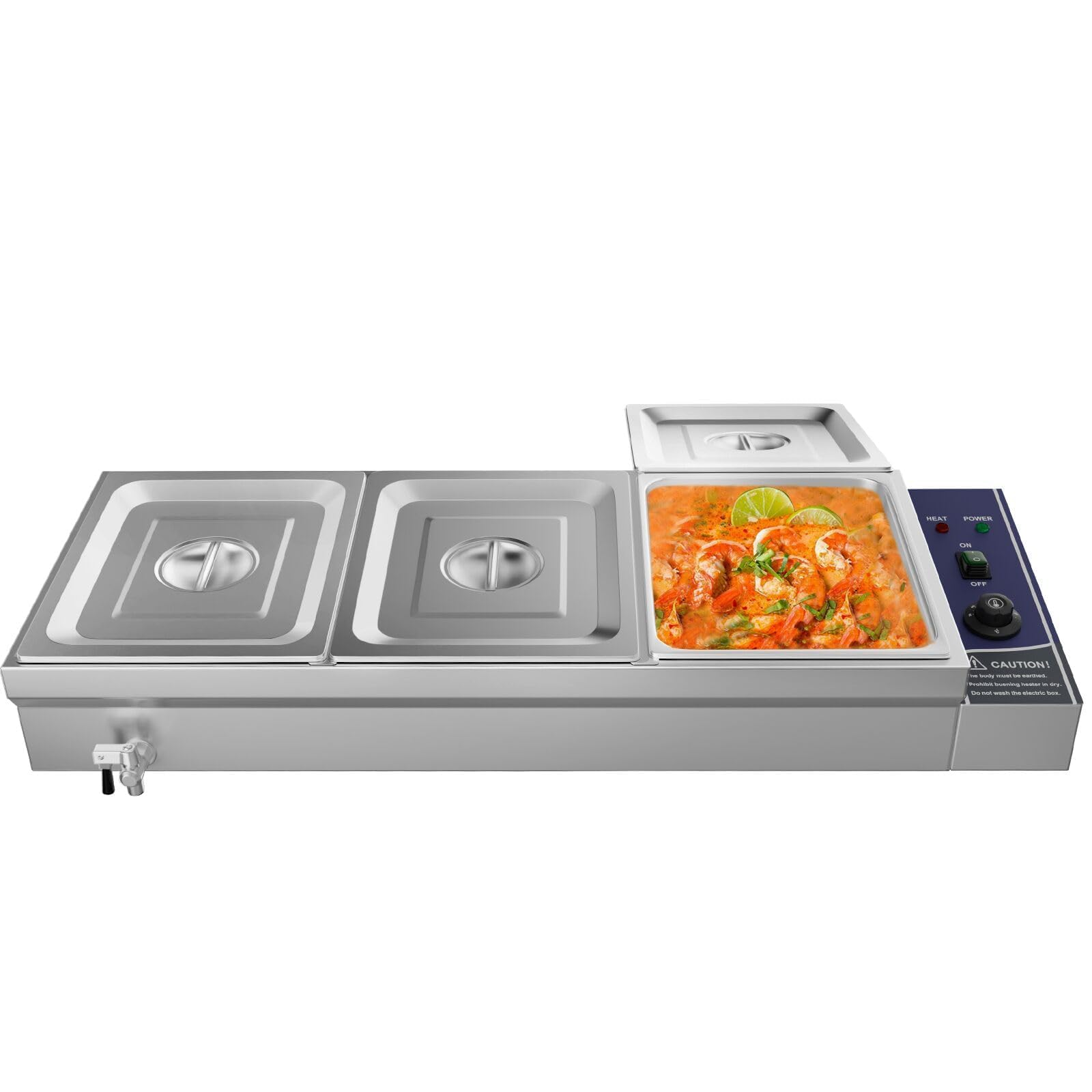 TAIMIKO Bain Marie Electric Food Warmer 1500W Commercial Stainless Steel Buffet Wet Well Sauce Drain Tap Gastronorm Container Catering Restaurants 30-85°C Temperature Control (3x 1/2GN Pan)
