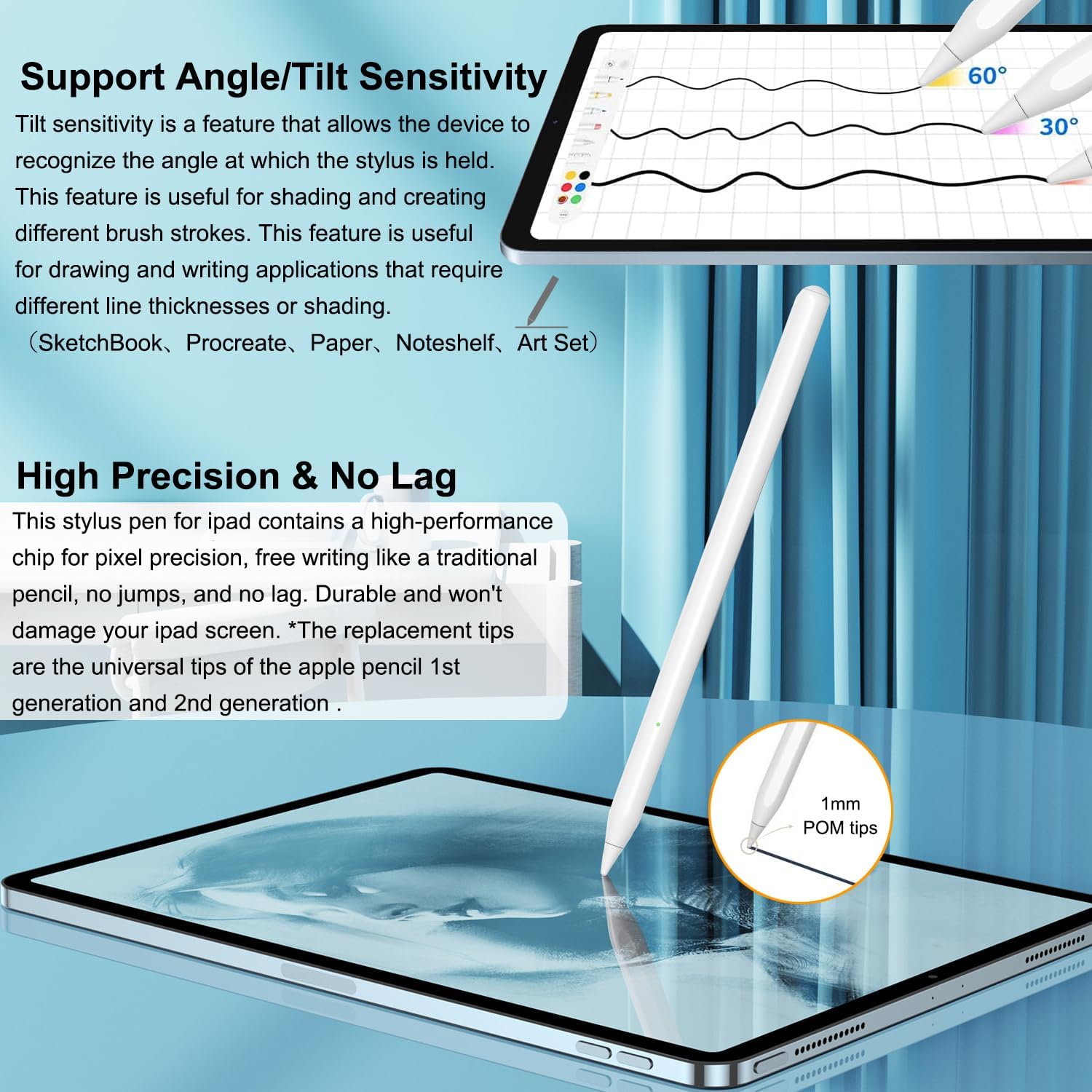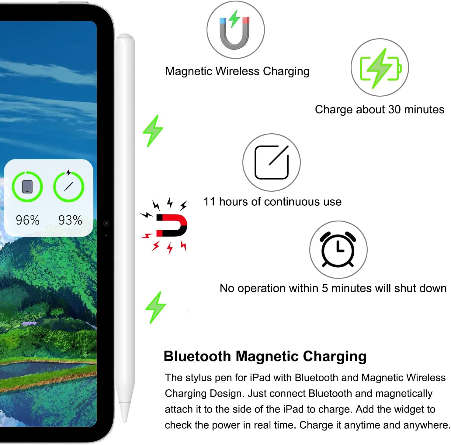 Stylus Pen for iPad with Magnetic Wireless Charging Compatible with iPad Pro 12.9" 3/4/5/,iPad Pro 11" 1/2/3/4,iPad Air 4/5, iPad Mini 6, 30 Minutes Fast Charge Pad Pencil 2nd Generation