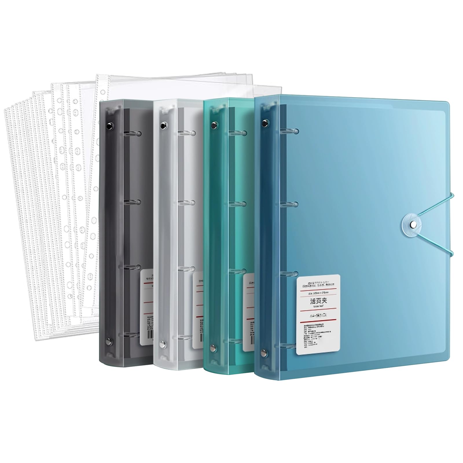 4 Pack Plastic Binder With 100Pcs Punched Pockets, Clear Sheet Protectors, 4 Ring A4 Heavy Duty Large Binder for Workshop, Office Organizer, Important Documents with Punched Pockets
