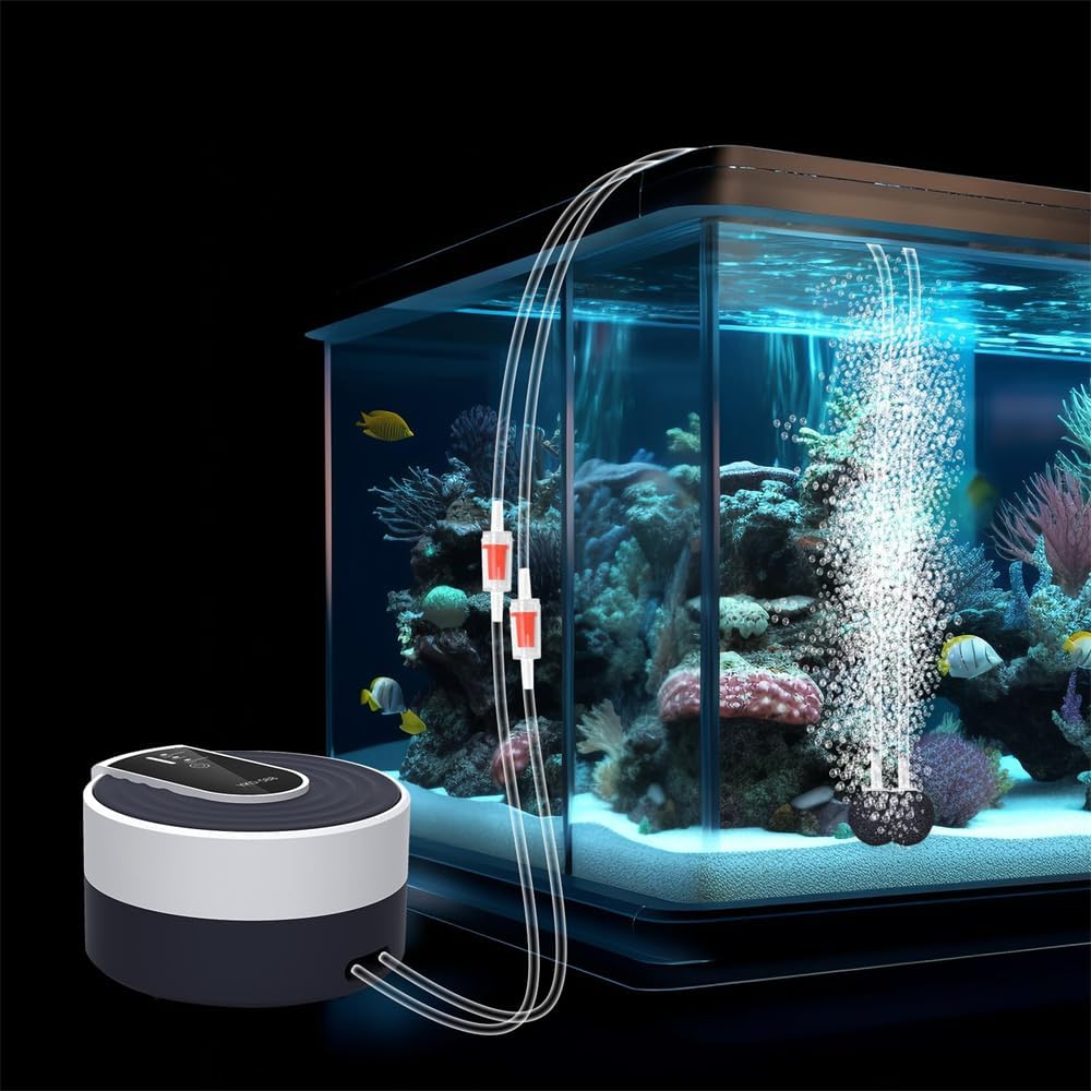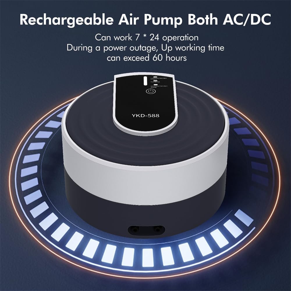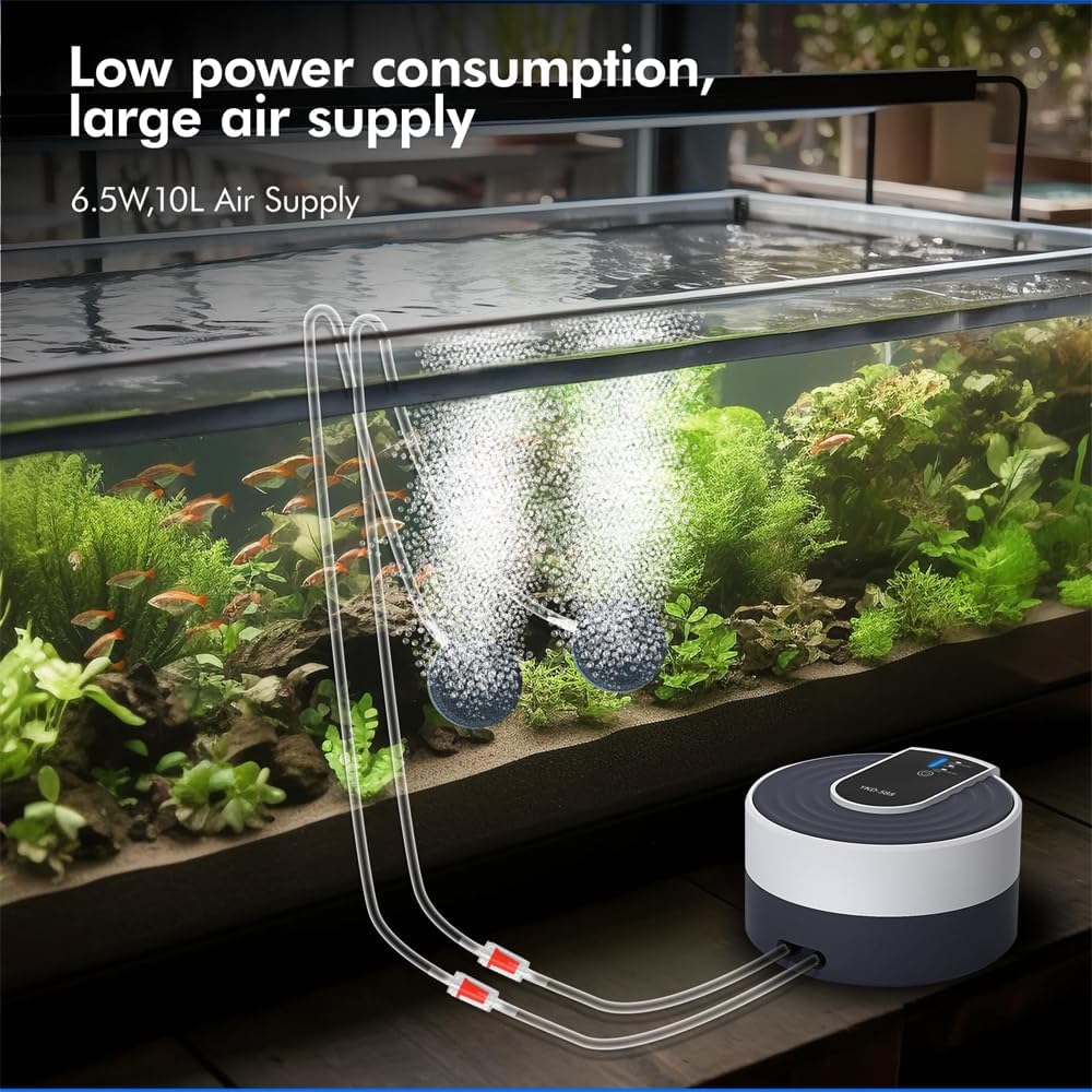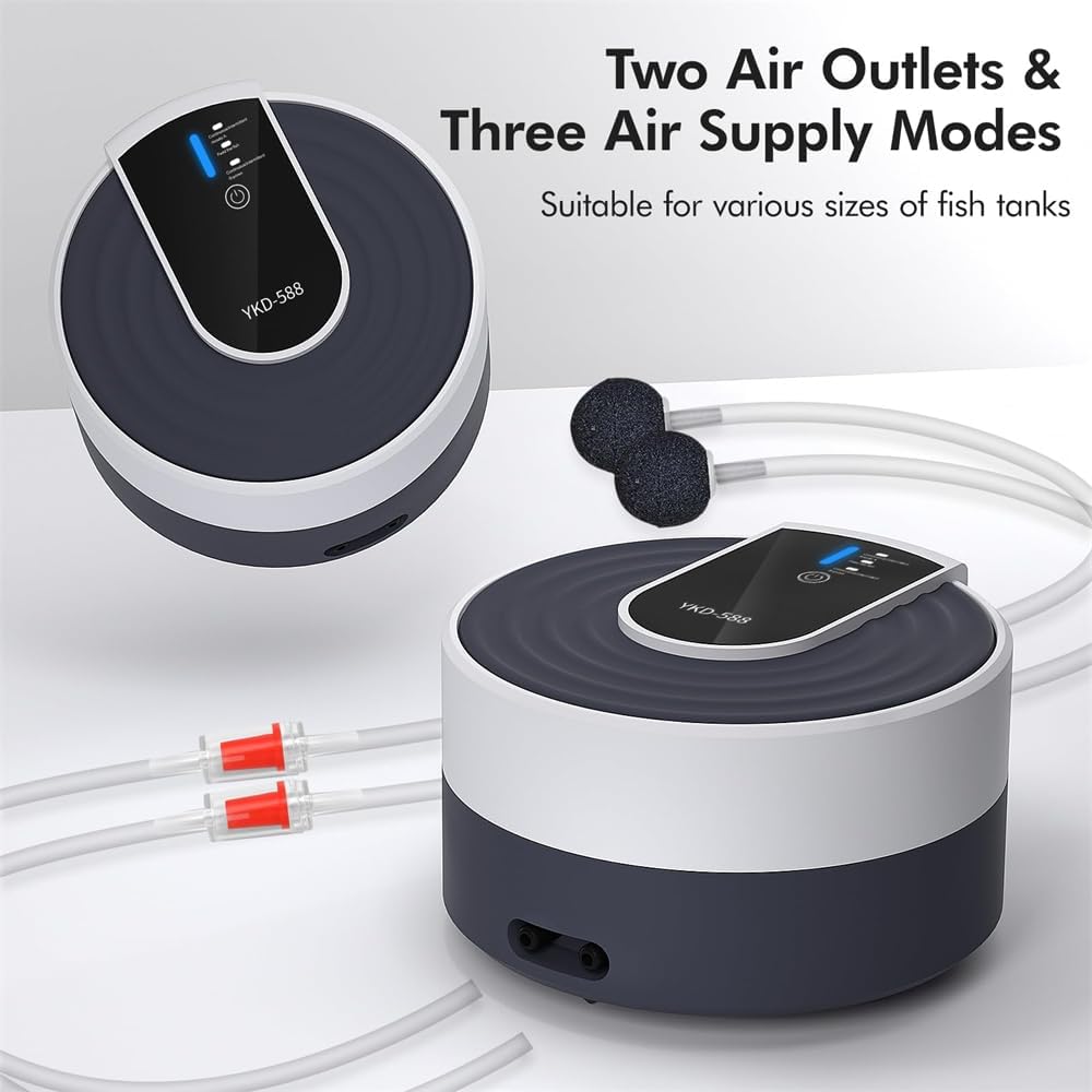 Azonee Aquarium Air Pump for Fish Tank, Ultra Quiet Air Pump Rechargeable Aerator 6.5W, Adjustable Multi-Modes, Powerful Oxgen Pump with 2 Outlet, up to 10L/min