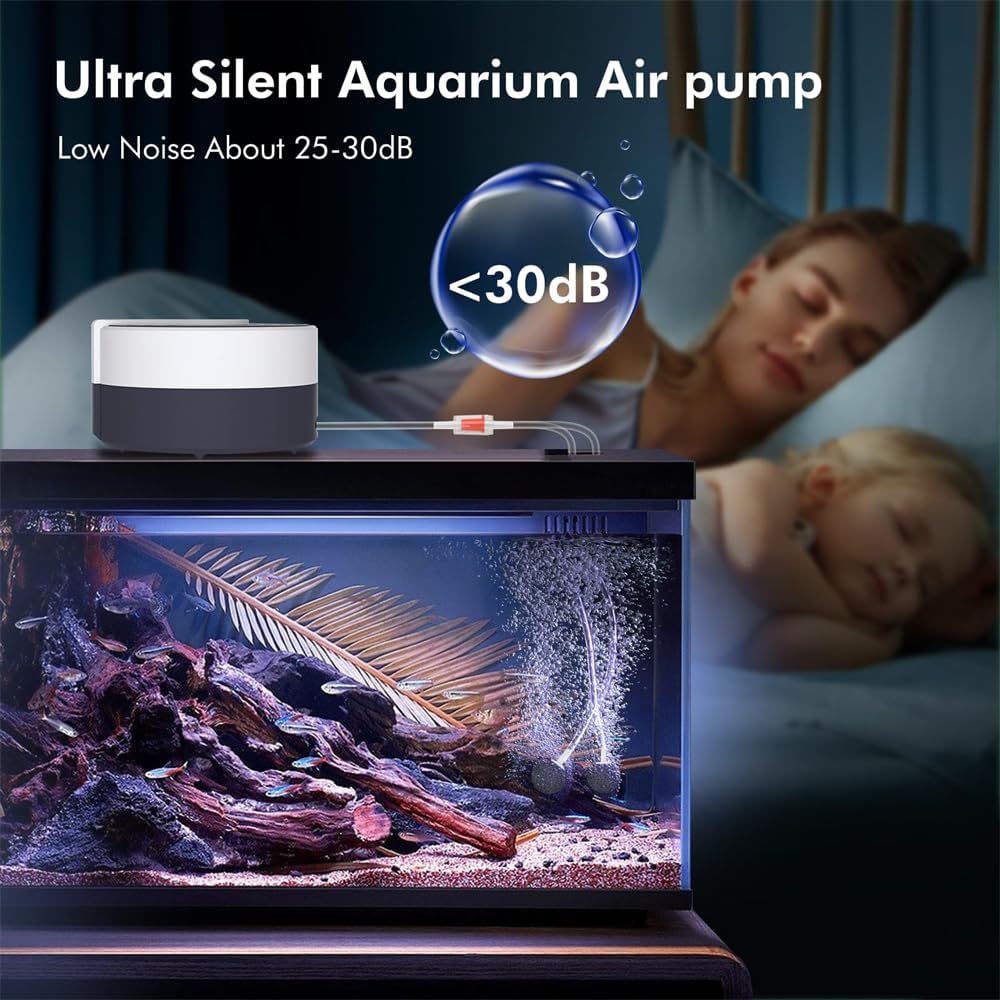- 🐟Ultra Quiet Aquarium Air Pump: Noise of about 25 DB