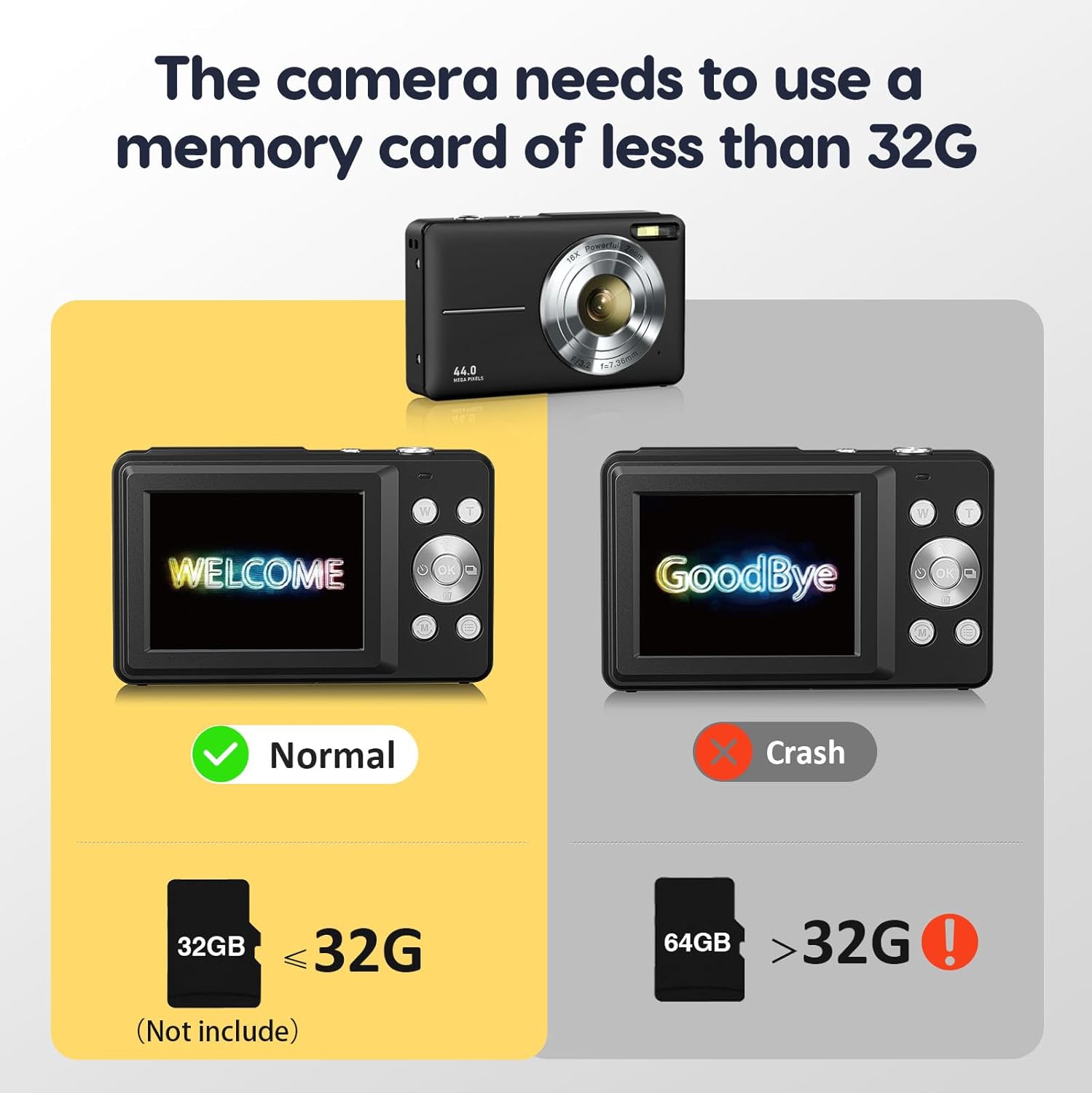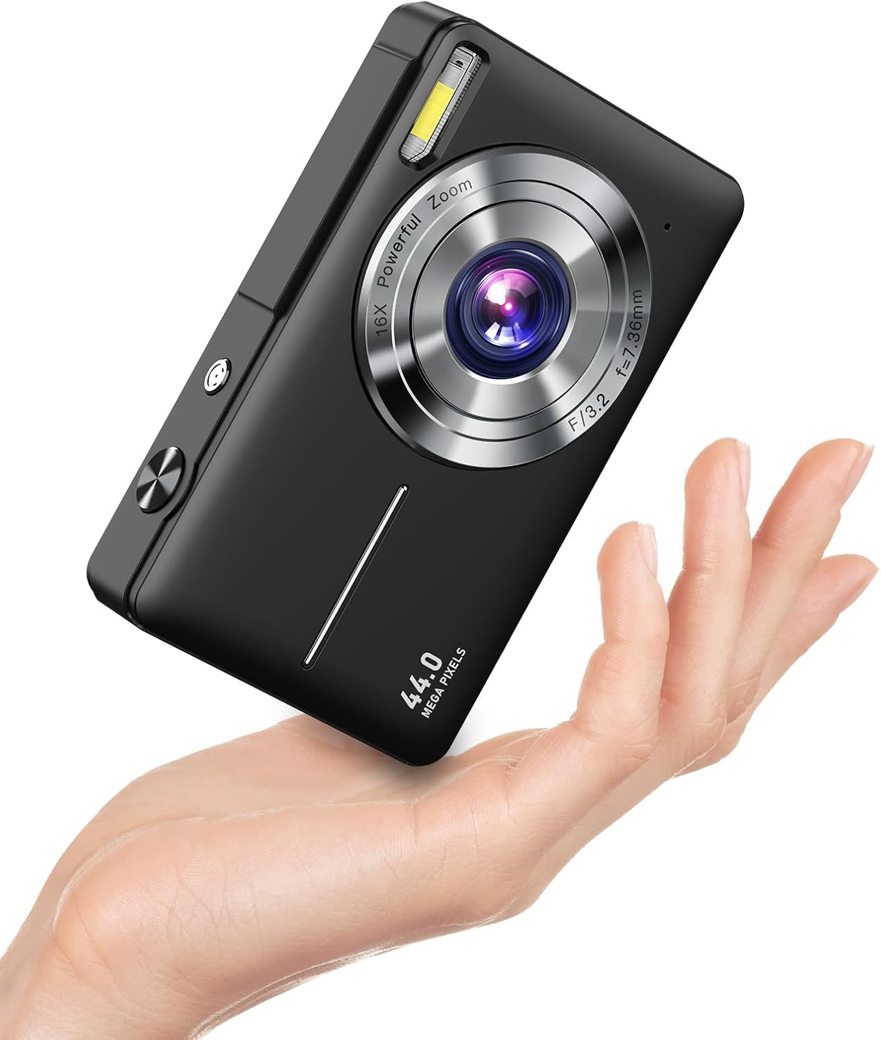 CAMKORY Digital Camera 1080P FHD Photo Camera 44MP Camera Digital Compact Camera 16X Digital Zoom Easy Vlogging Camera Portable Compact Digital Camera for Children Teenagers Seniors Beginners (Black)