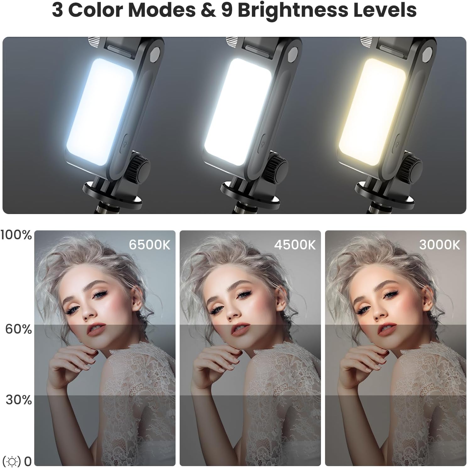 - 【Built-In Fill Light for Perfect Lighting】The Phone Gimbal comes with an integrated fill light that offers 3 color temperatures and 9 adjustable brightness levels. Whether you're streaming live or recording a selfie