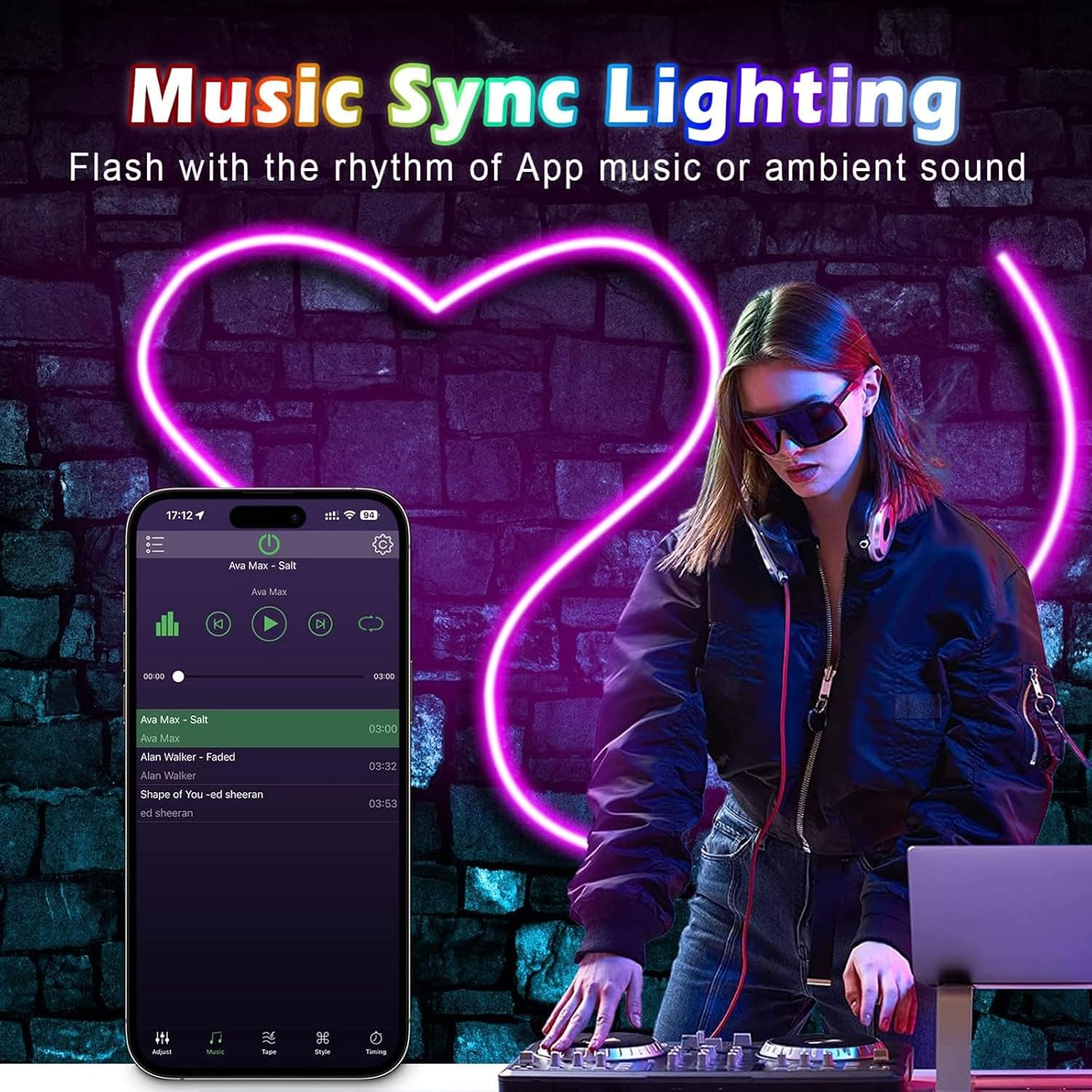 - 【Easy Installation】: The Neon LED Strip DIY Function includes a 16.4ft light strip