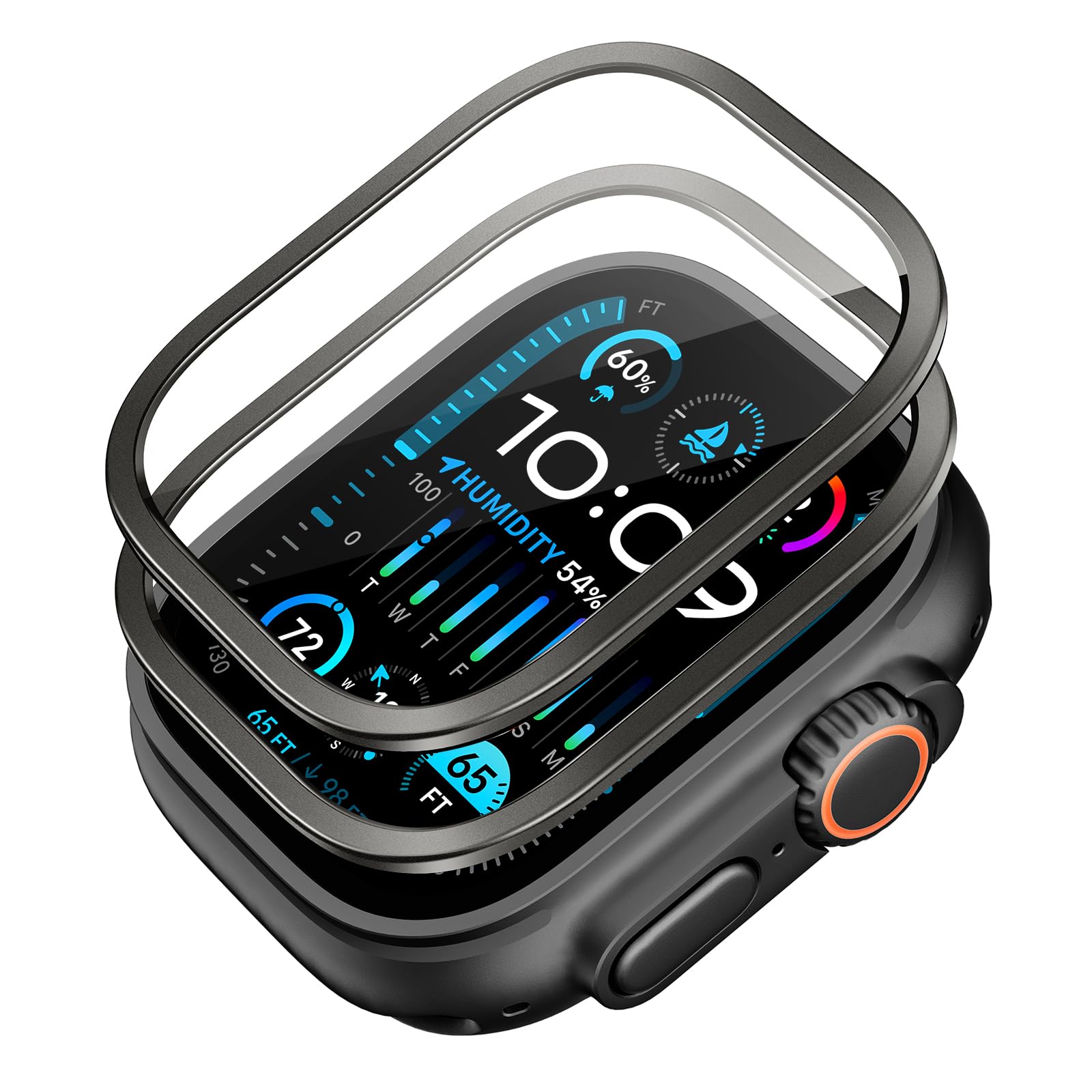 ESR for Apple Watch Ultra 2/1 (2024/2023/2022, 49 mm) Screen Protector, Military Grade Protection, 2 Pack Tempered Glass Protector with Aluminum Alloy Frame, Keep Original, Armorite Series, Black