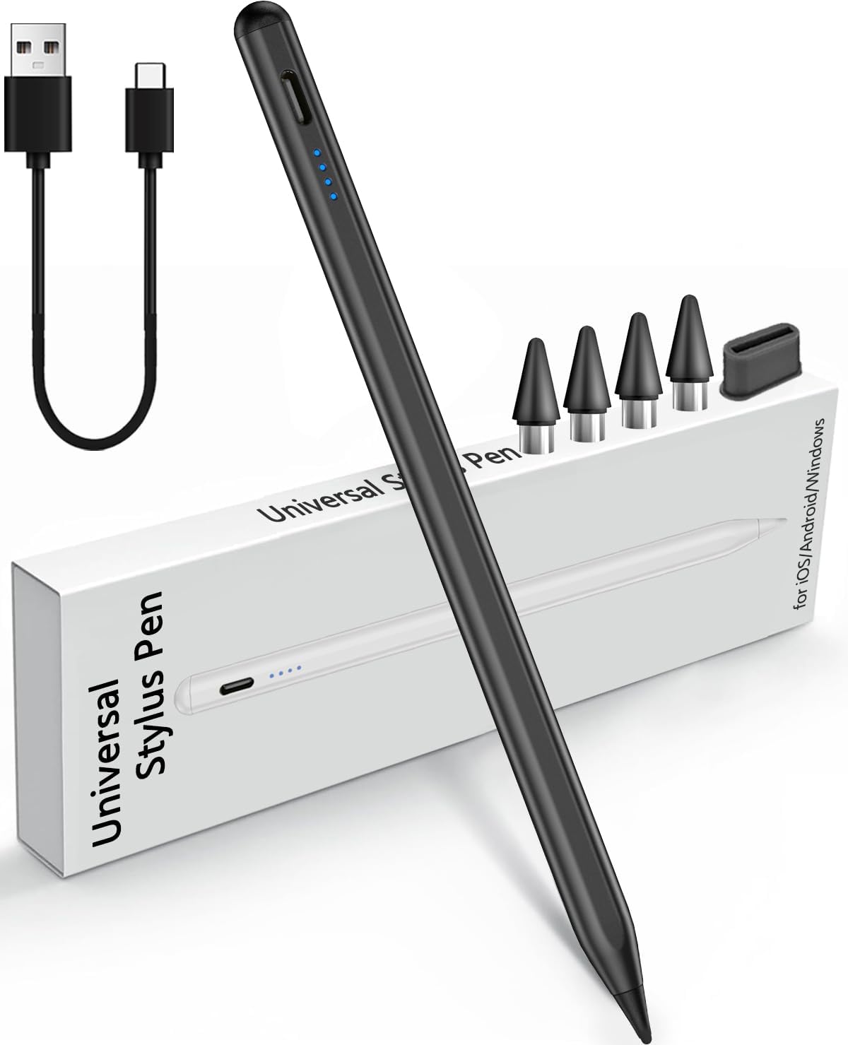 Aimery Universal Stylus Pen for iOS & Android Touch Screens - Compatible with iPhone, Android Phones, iPad, Samsung Tablets - Drawing & Writing (I - Black - Universal 4 Lights) For Android iOS - Games Touchscreen(Not Write) I - Black - Universal 4
