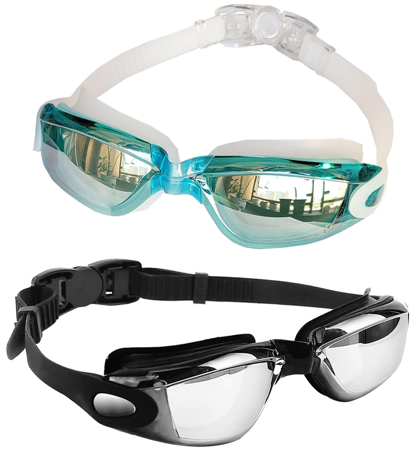 Swim Goggles,[Anti Fog/UV Resistant] Wide Clear Vision Swimming Goggles for adults Men Women,Bright Color Plated [ Nose+Ear Plugs+Goggle Case]