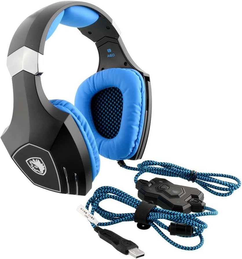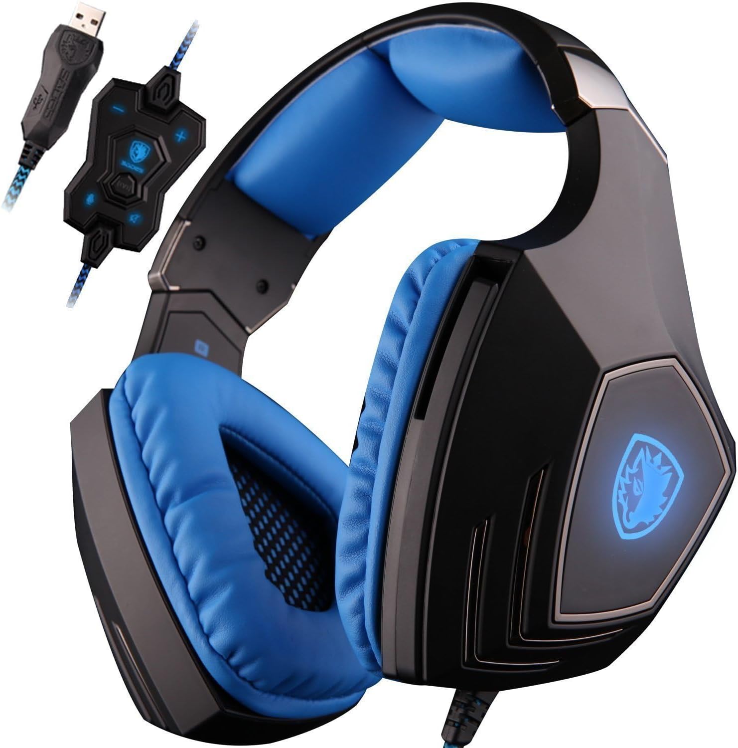 SKEIDO 7.1 Surround Sound Headphones USB PC Gaming Headset Stereo headsets Headband High Sensitivity Microphone Vibration Noise-Canceling Volume Control LED Light for PC/Laptop A60