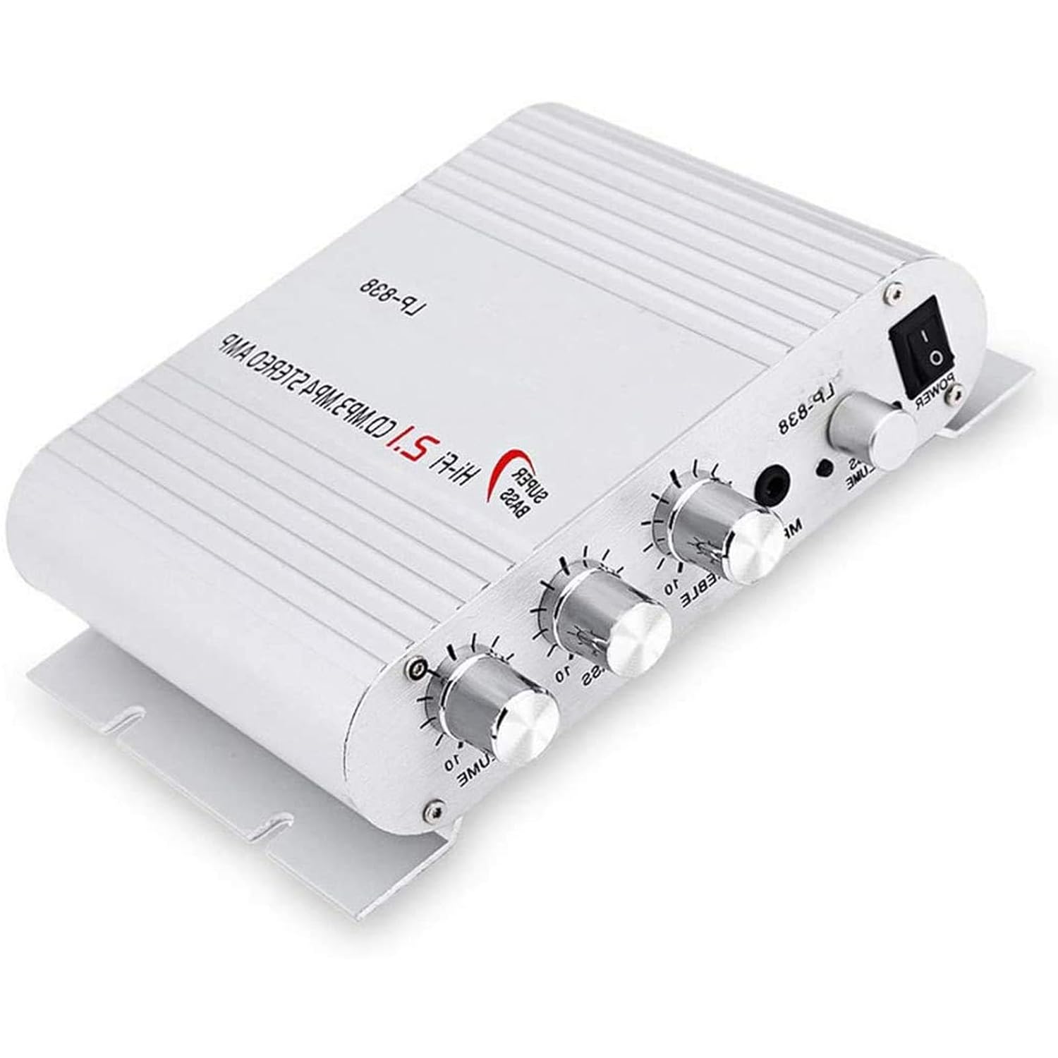 HALAMODO LP-838 Mini Hi-Fi Super BASS 2.1 Channel Audio Amplifier Booster CD MP3 MP4 Stereo AMP For Car Bus Boat Home Computer(Silver)