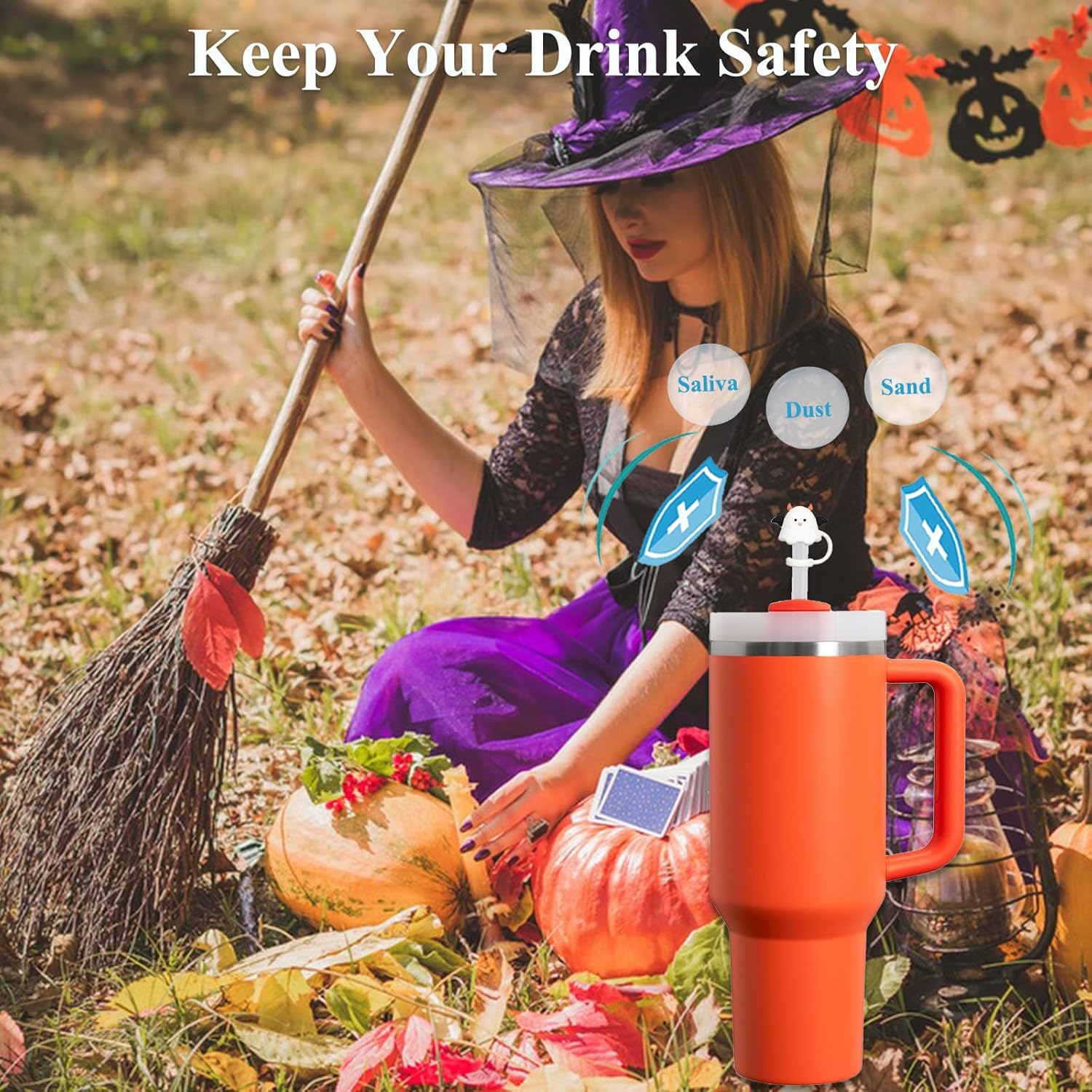 TERRIFI 5PCS Halloween Silicone Straw Covers for Stanley Cups - 10mm 0.4in Dust-Proof Reusable Tips for 30 & 40 Oz Tumblers with Handle - Ideal Halloween Gifts (Halloween Ghost)