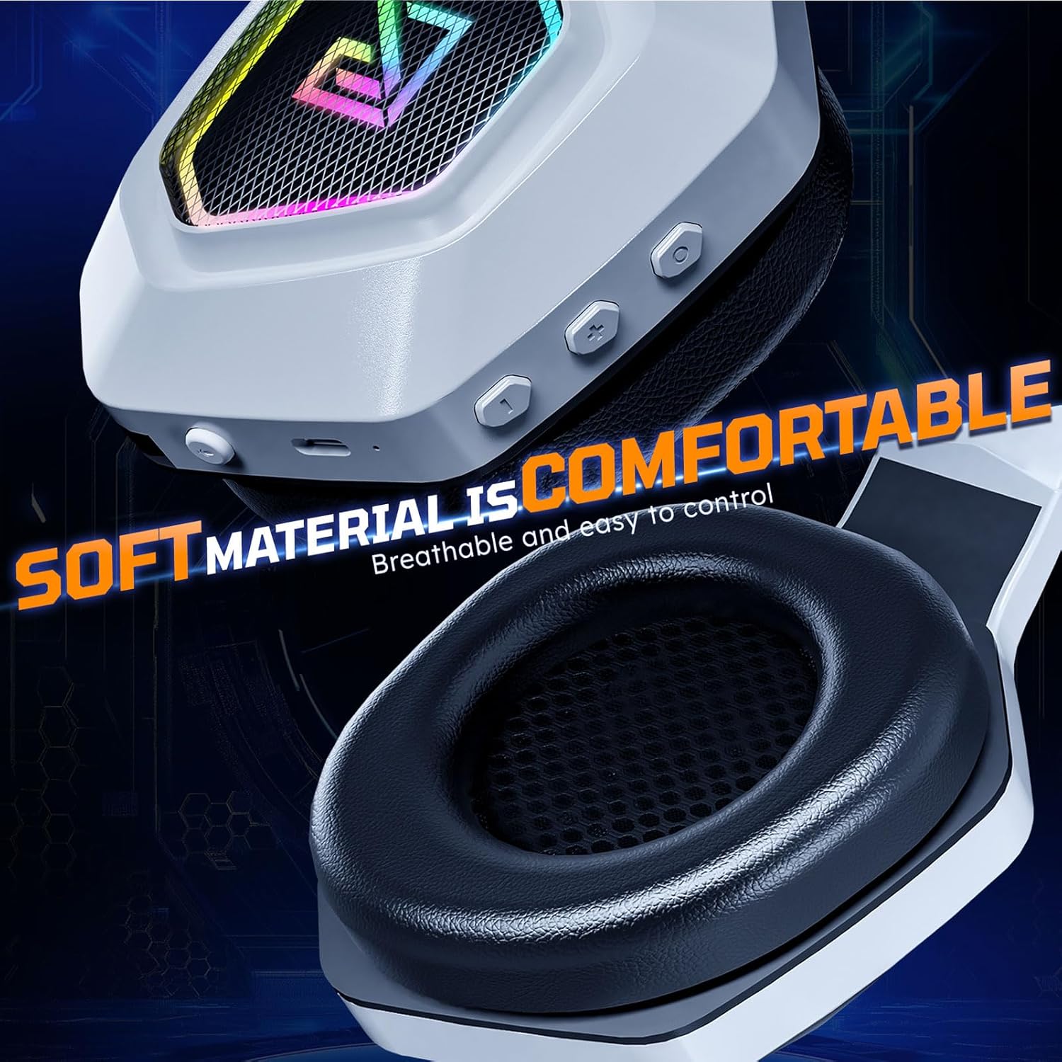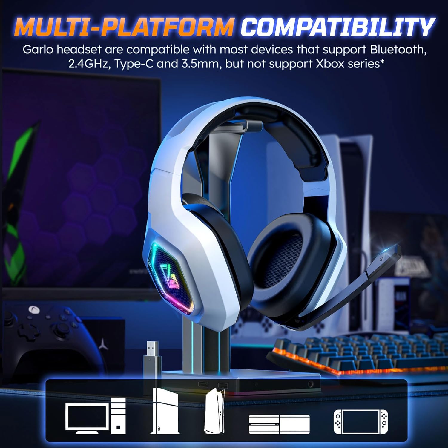 Garlo Wireless Gaming Headset with 7.1 Surround Sound & 60H+ Hrs, 2.4GHz/Wired/Bluetooth Gaming Headphones with USB and Type-c, RGB Over Ear Headphones for Pc, Ps4, Ps5, Switch, Laptop, Mobile, Mac