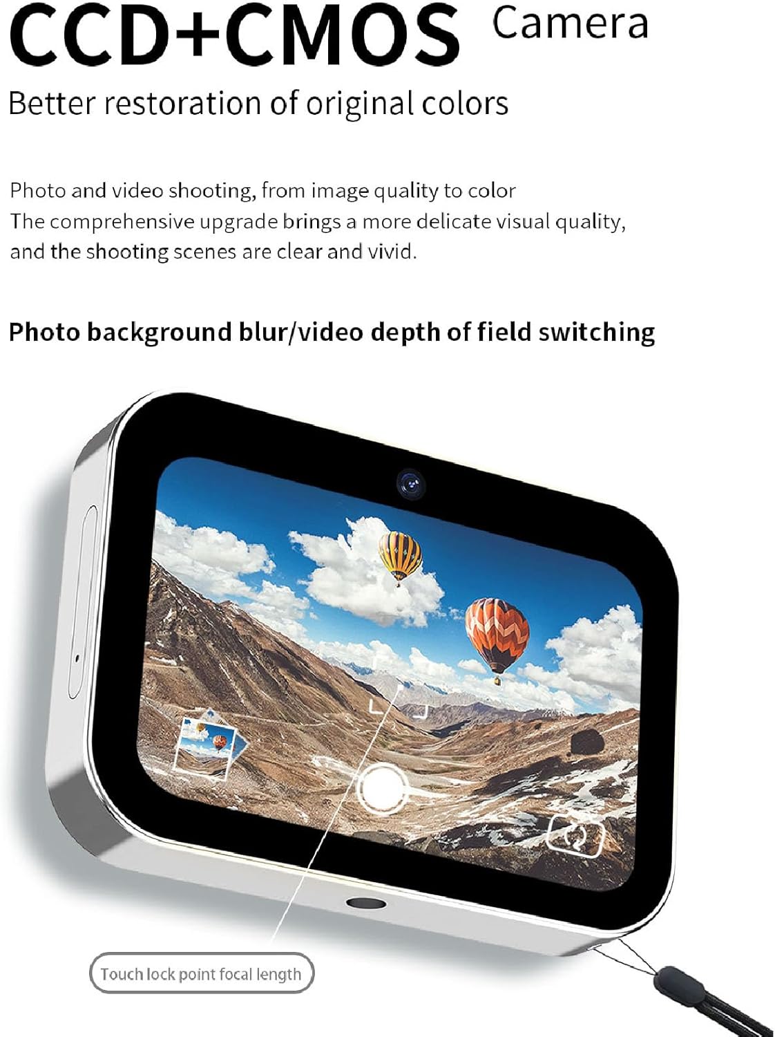 - CMOS telephoto lens and CCD wide angle lens to present real quality photos and videos through the combination of CCD and CMOS lens colors. The image is delicate and colorful