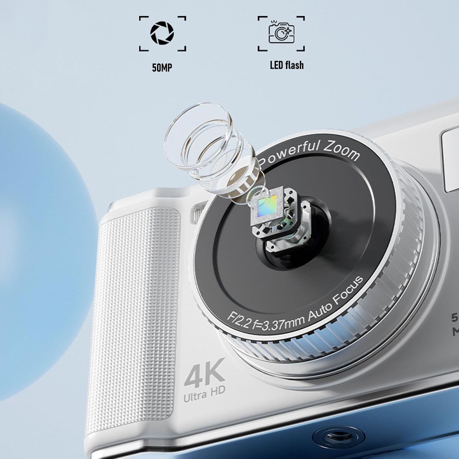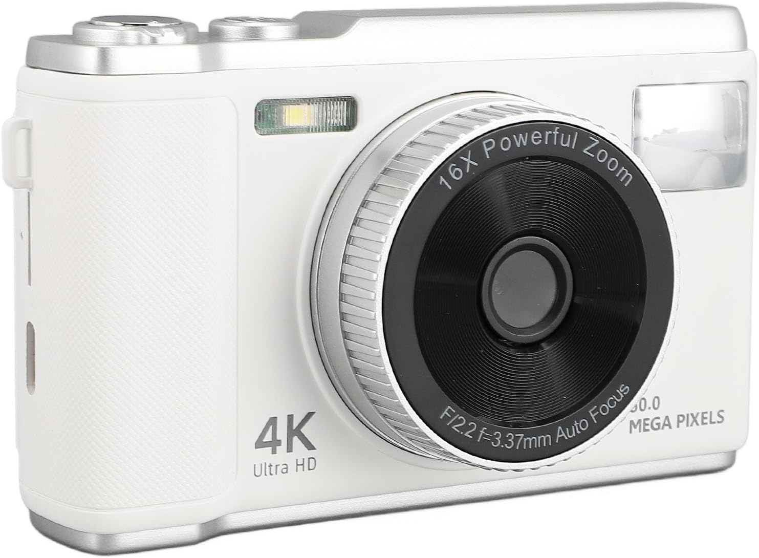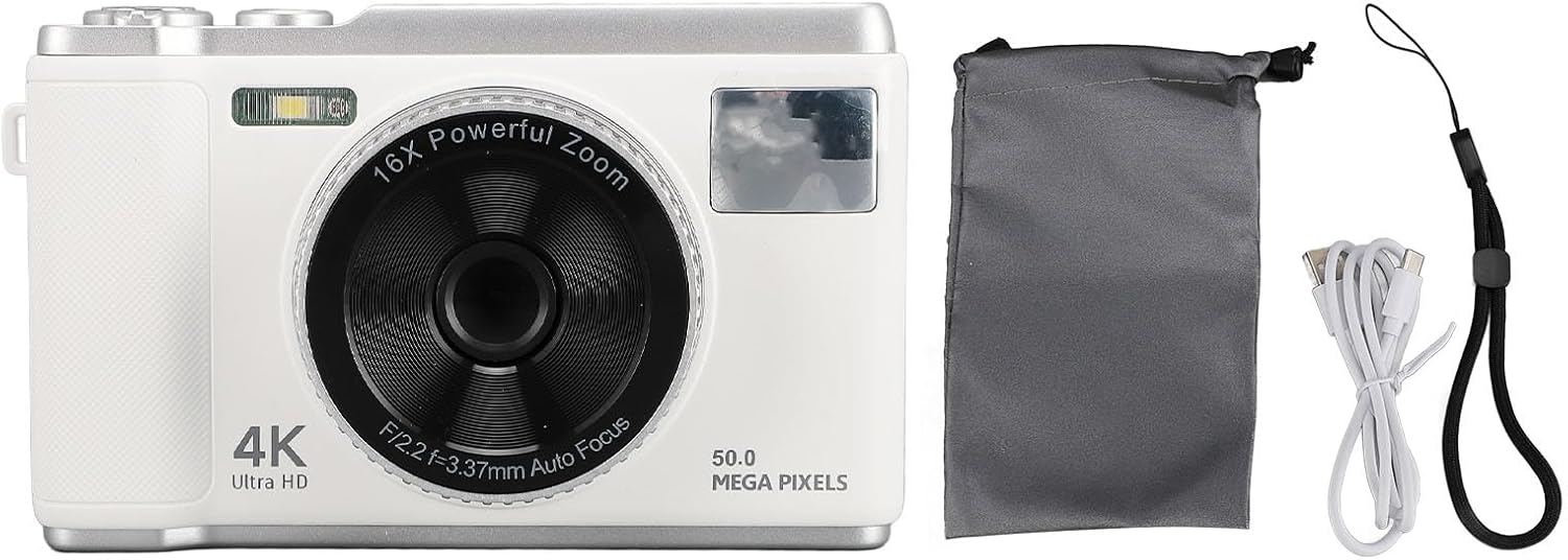 Wisoqu 4K 50MP Digital Camera, Digital Point and Shoot Camera with 16X Digital Zoom, 2.8in Screen Autofocus Compact Small Camera with Flash Anti Shake for Teens Adult Beginner (White)