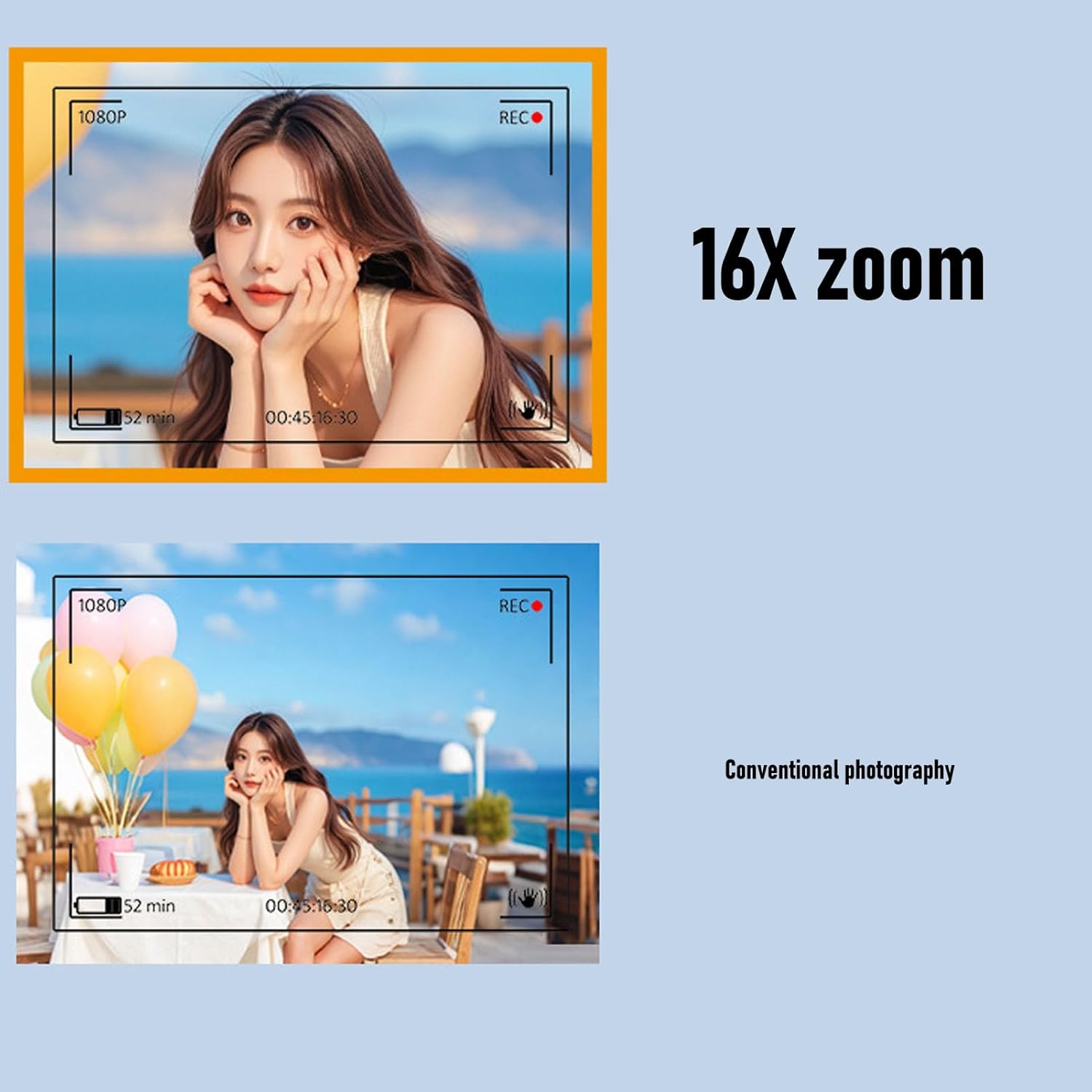 - 16x Digital Zoom and Anti Shake Function: Smooth 16x digital zoom in out brings beautiful view closer. Built in anti shake technology ensures clear