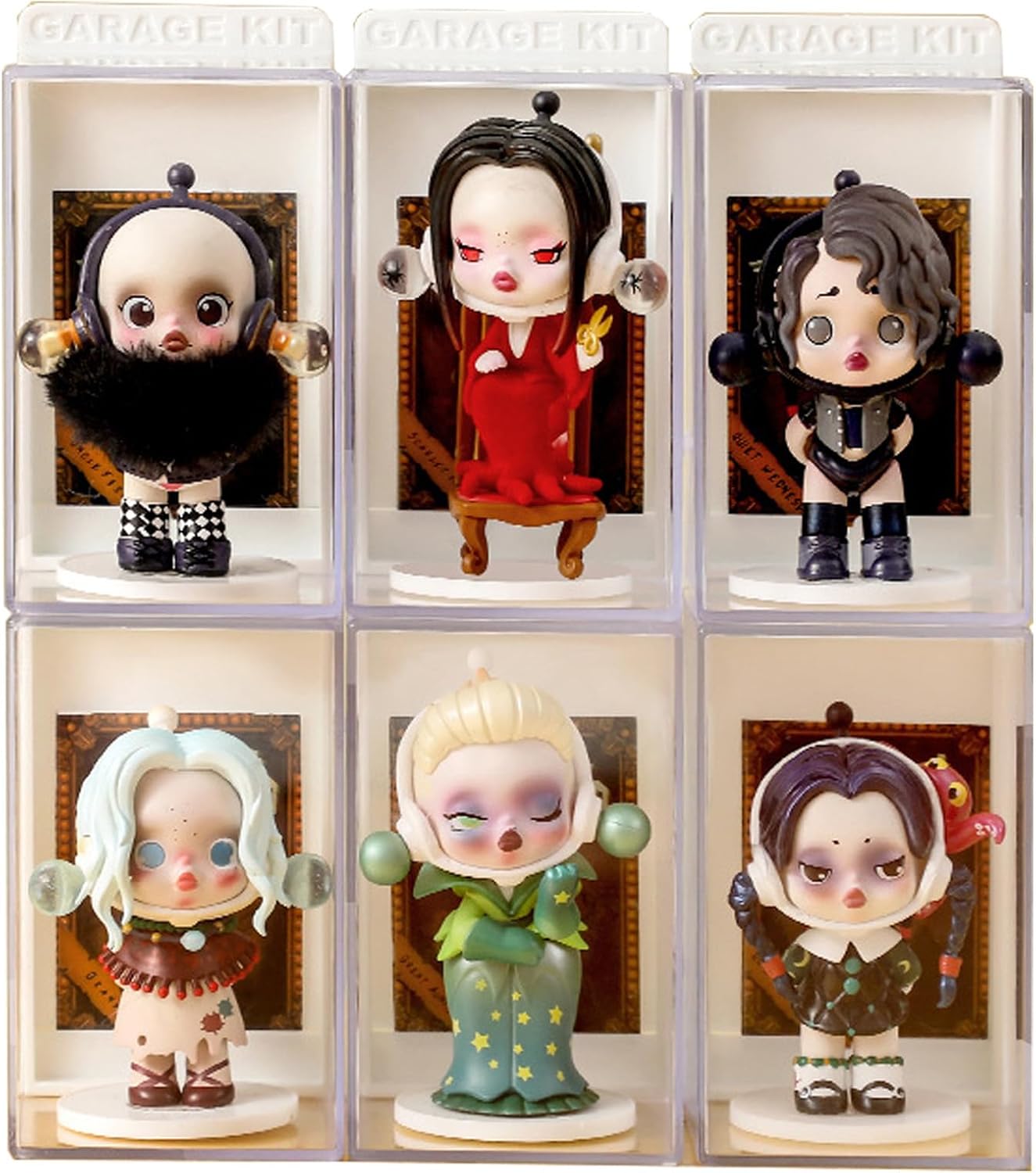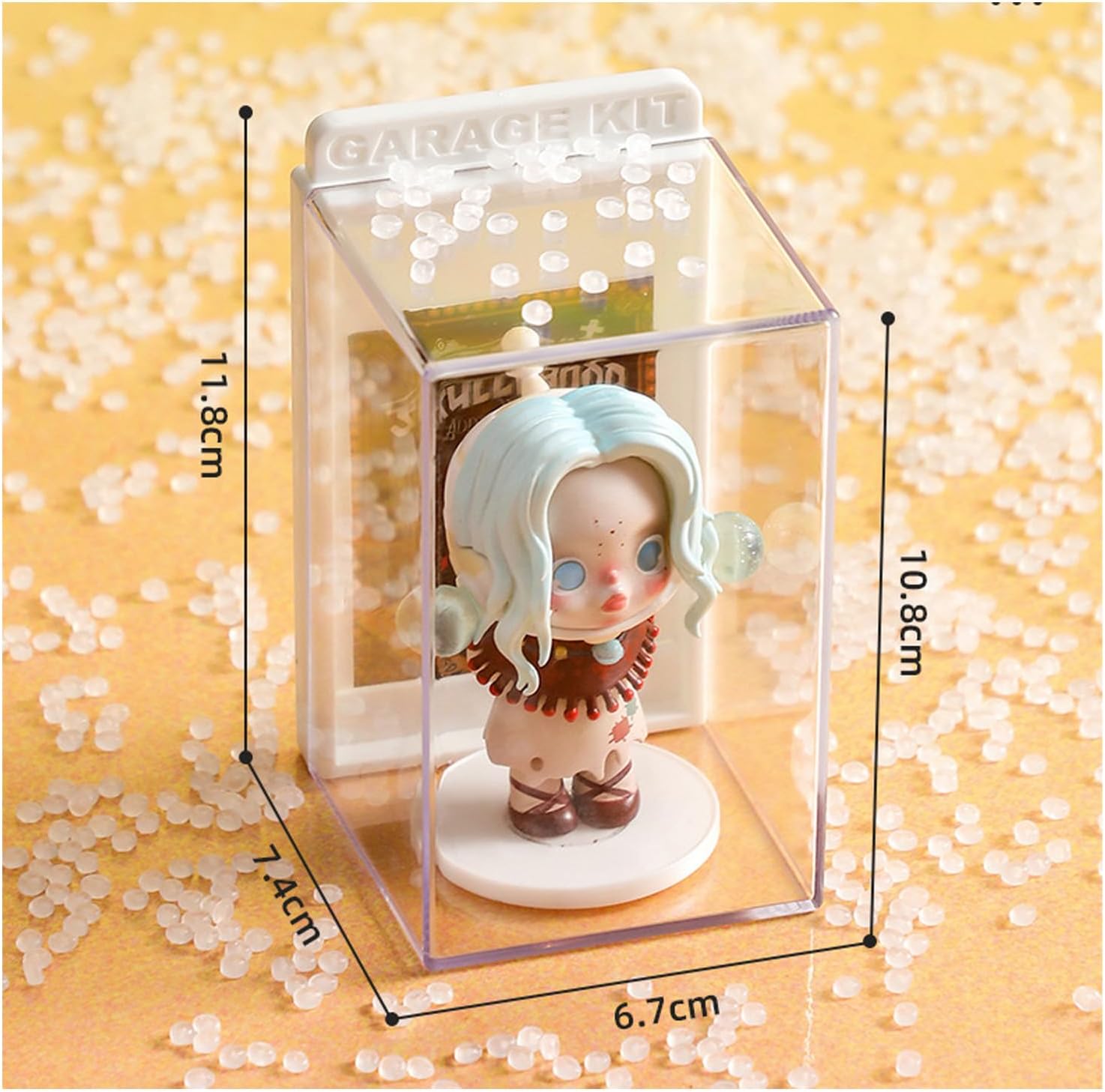 6pcs Acrylic Clear Doll Display Case, Figures Display Stands Box With ID Card Slot, Dustproof Organizer Case For Pop Mart Collect Figures, (White, Figures Not Included)