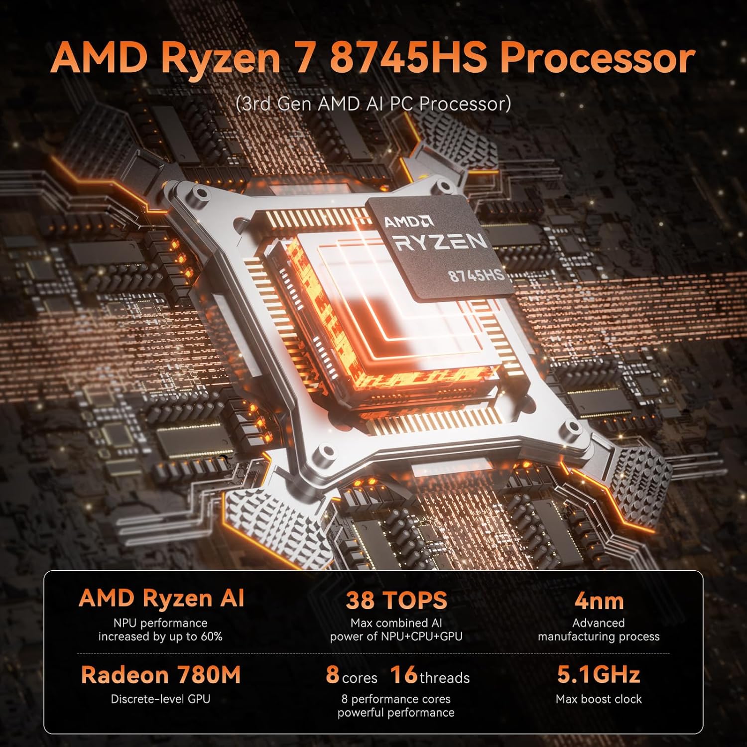 GEEKOM AX8 Pro Mini PC, AMD Ryzen7 8745HS Mini Computers, 32GB RAM, 512GB SSD, Win 11 Pro