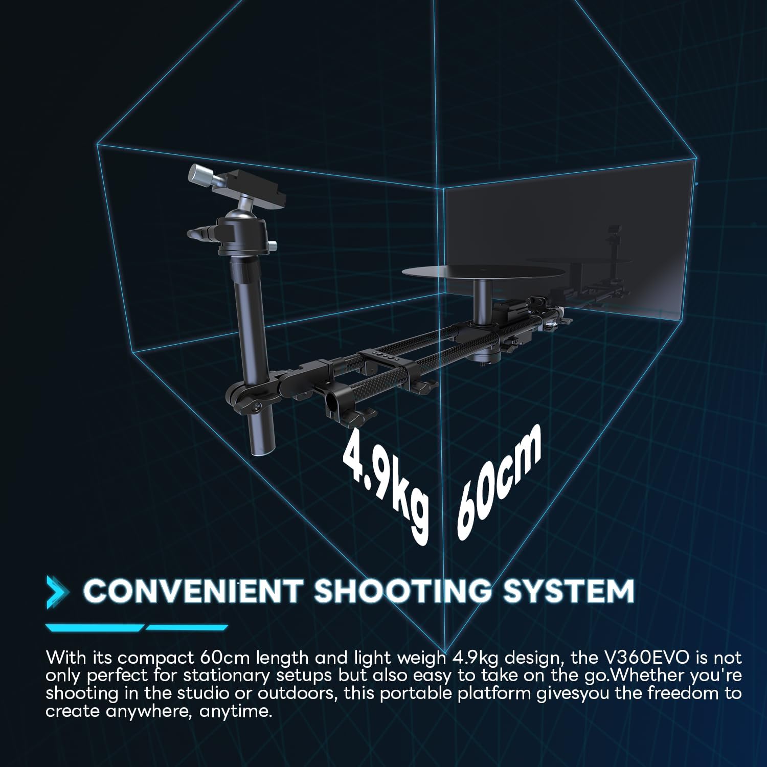 - 【Smart System with App Control】V360EVO rotating platform uses a precise electric motor to allow you to experience more precise and convenient rotation effects
