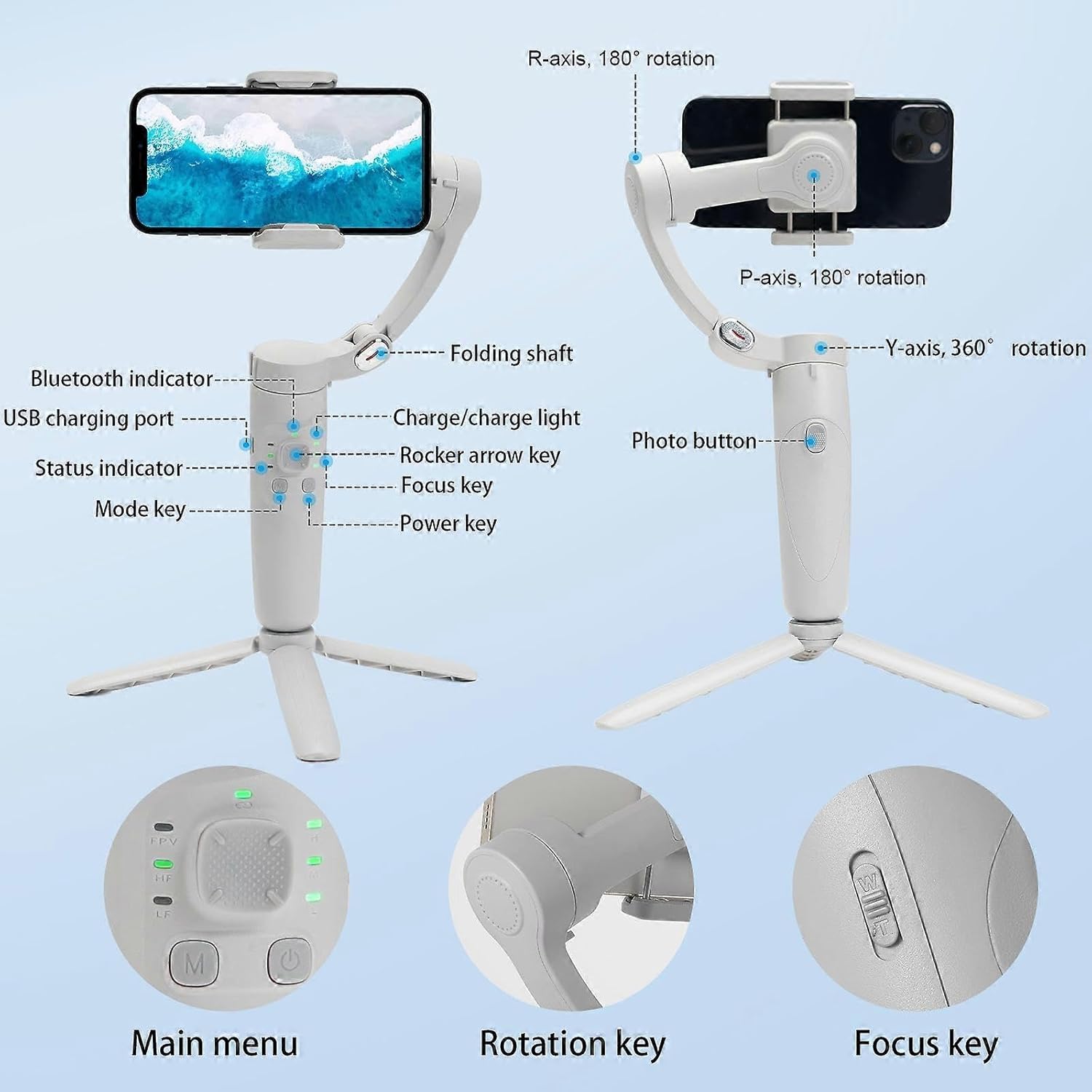 M1 3-Axis Gimbal Handheld Stabilizer for Phone Foldable Handheld Phone Video Record Vlog Anti-Shake Stabilizer Video Supplies